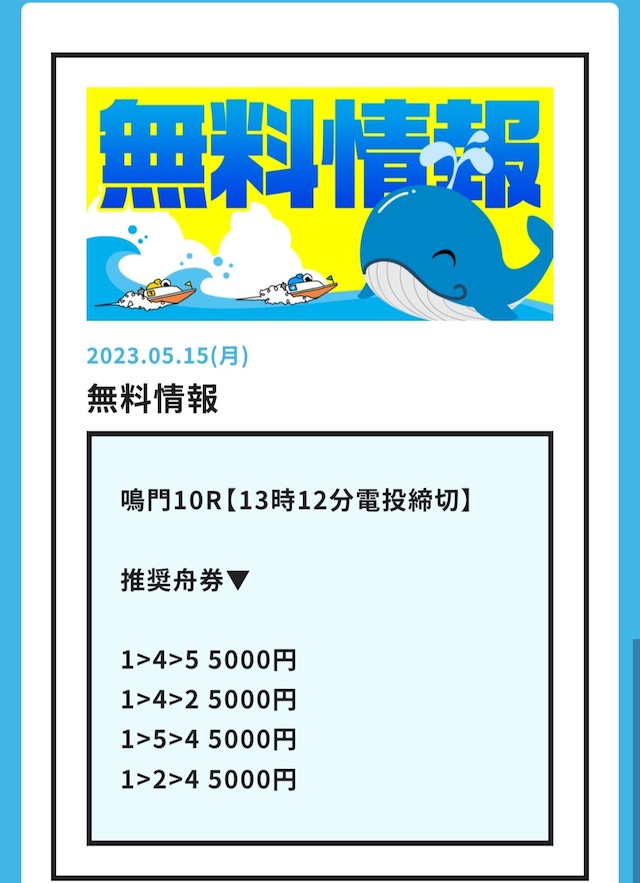 × | 有料プランを購入したが予想買い目が 時間になっても送られてこない。 そのあとサイトにアクセスできなくなった。 |