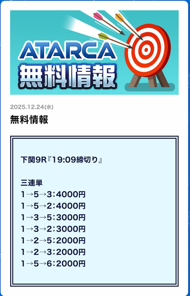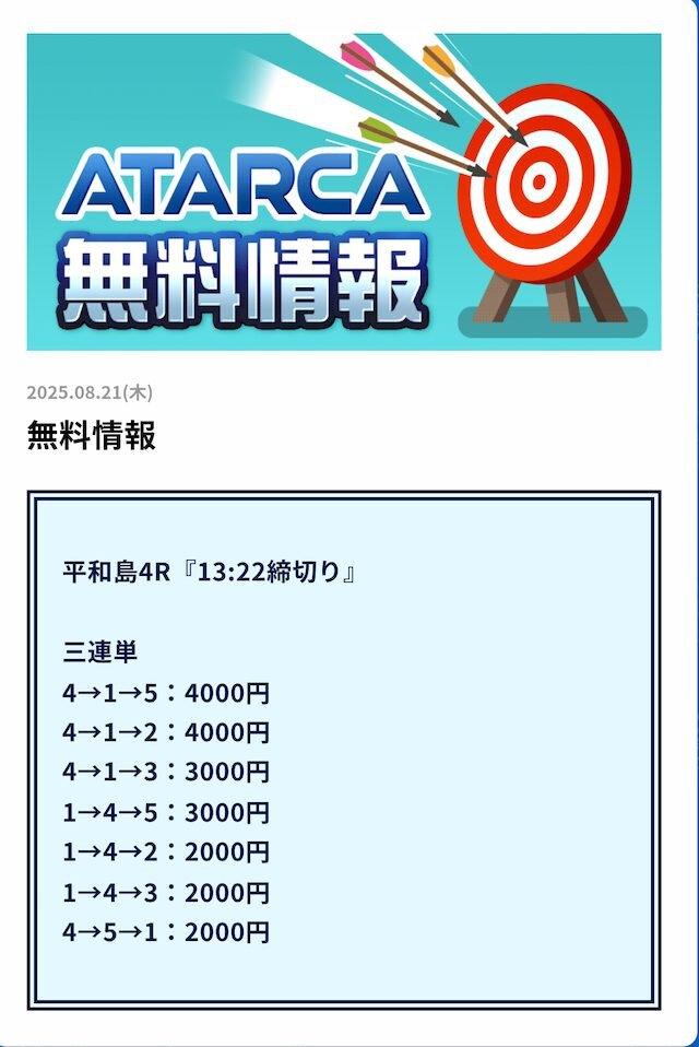 アタルカを2か月くらい使って気づいたんだけど、舟券代が4000円の買い目が当たるんだよね。これって大発見じゃない?