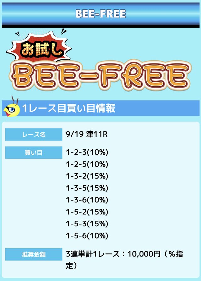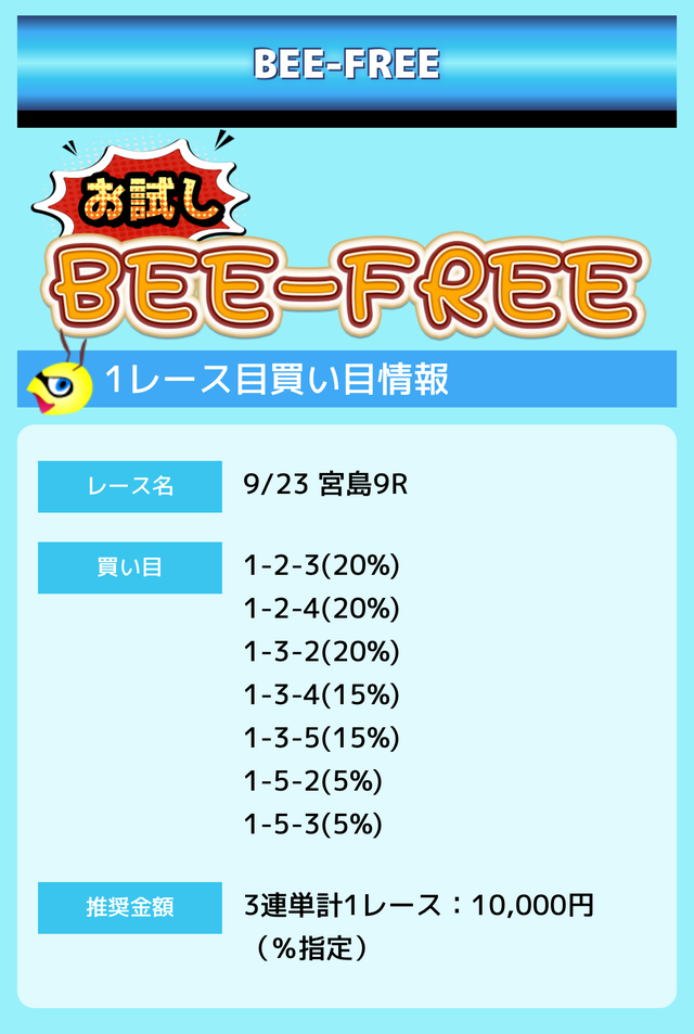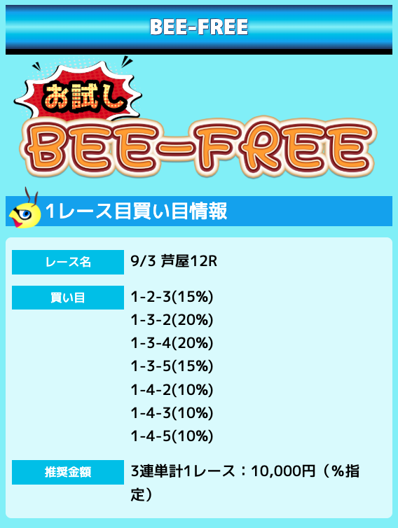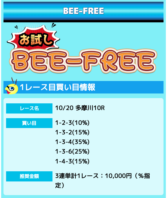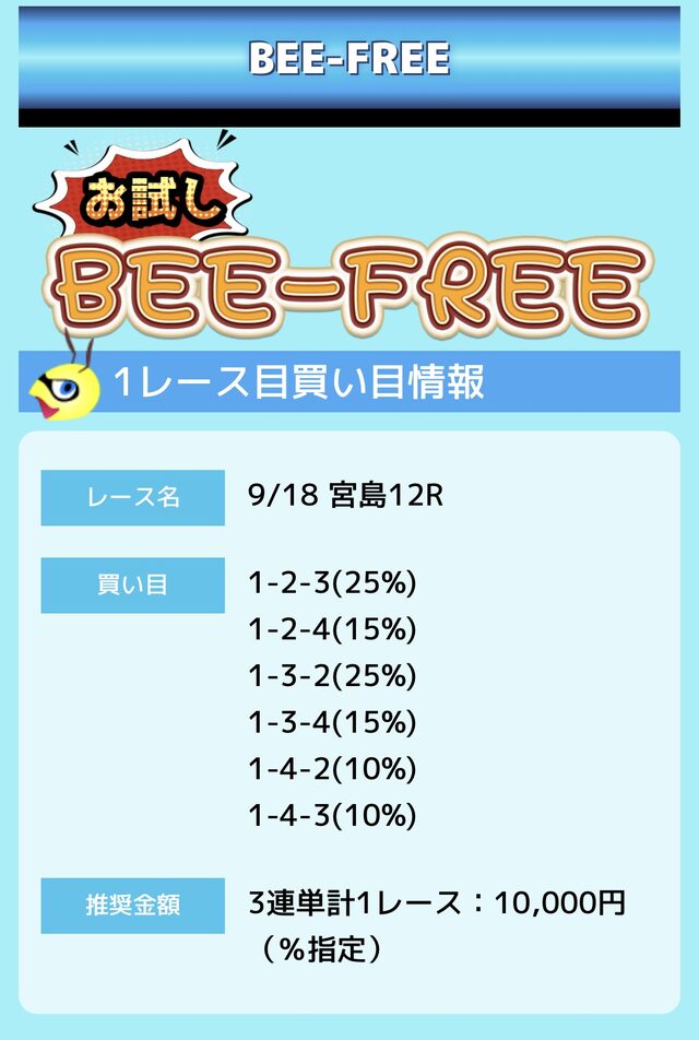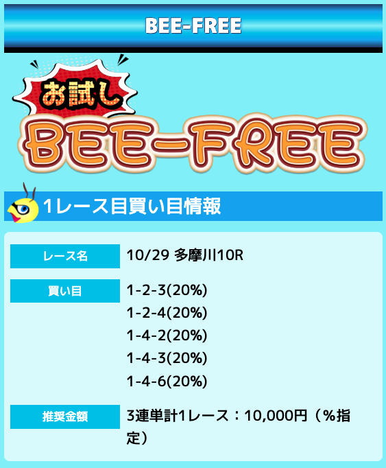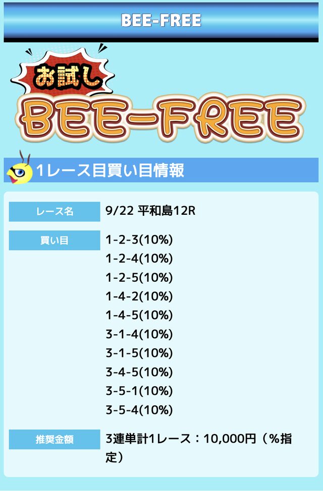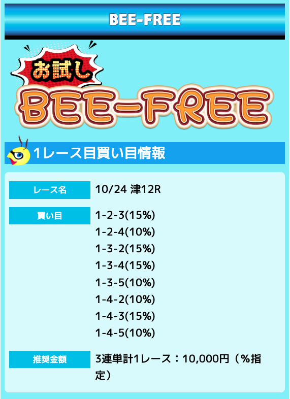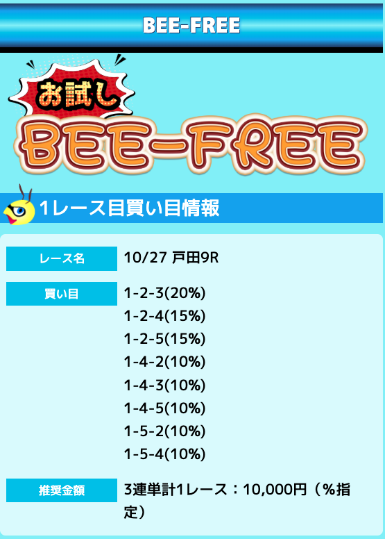 業界屈指の安さを誇るBEE-TRIALも良いですが、払戻金額は無料予想の良い時と同じくらいのレベル。