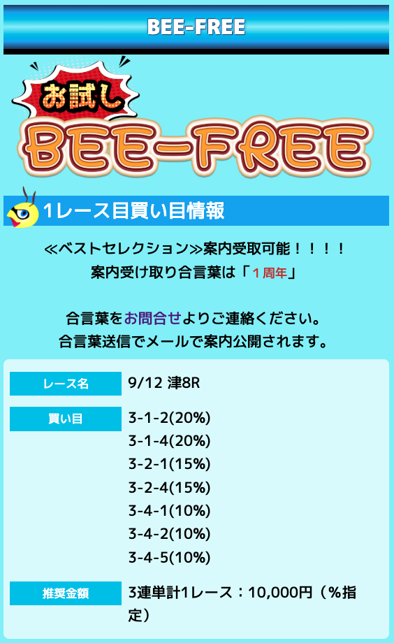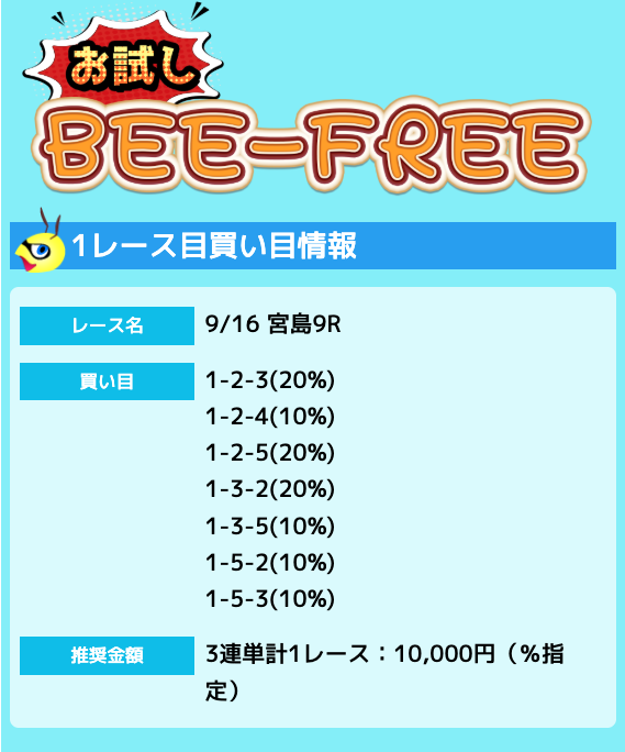 もちろん、もっと安いプランに参加するのもありですが、短期間で大きな回収を狙える有料予想を利用するなら「BEE-POWER」を利用するのが最適でしょう!