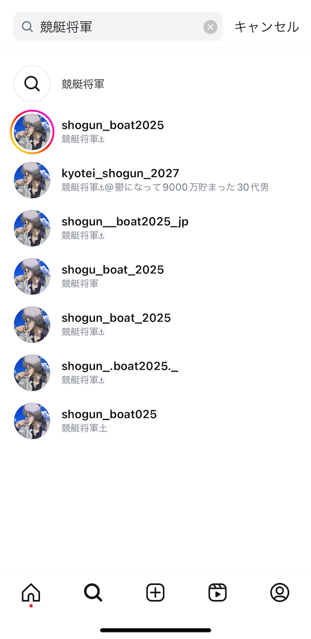 競艇将軍をインスタグラム上で検索するとたくさんのアカウントが出てきます。