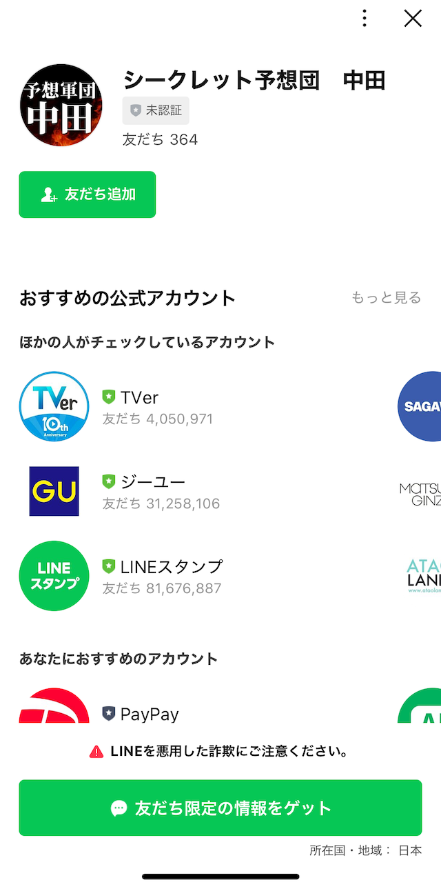 | 活動名はシークレット予想団の中田 LINE登録して検証してみた |