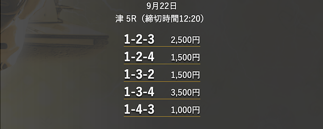 順当に1号艇の三井所選手を軸にしています。相手には2.3.4号艇の選手を選びアウトコース2艇は完全に切っています。インが逃げたとしてもまくり差しや差し場次第ではアウトコースの選手も絡んできそうな点が怖いです。トリガミになるオッズもありませんし、とりあえず指示通りに購入していきます。