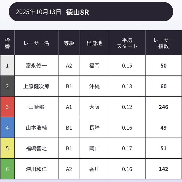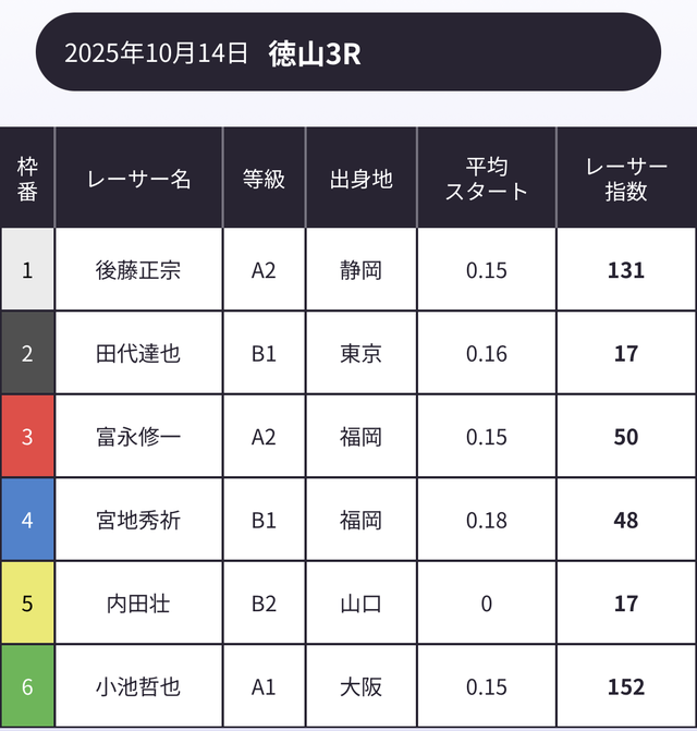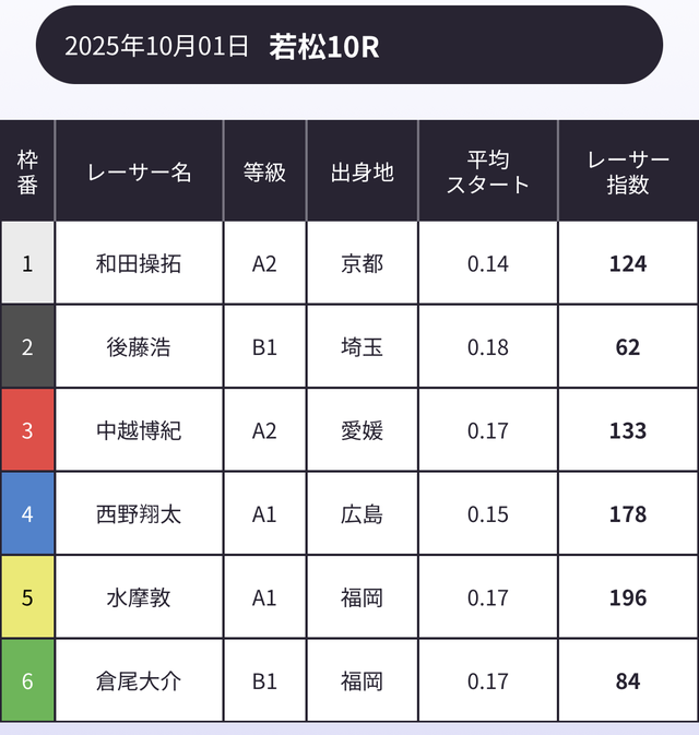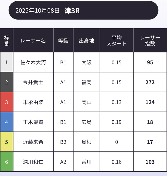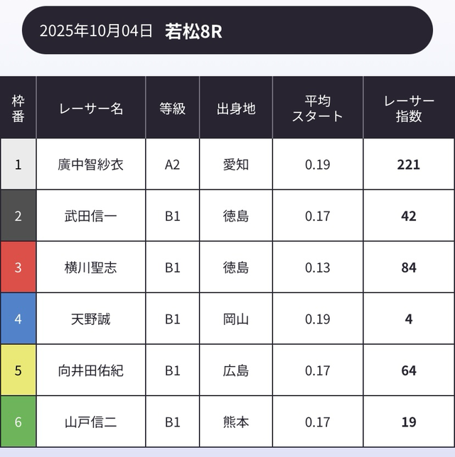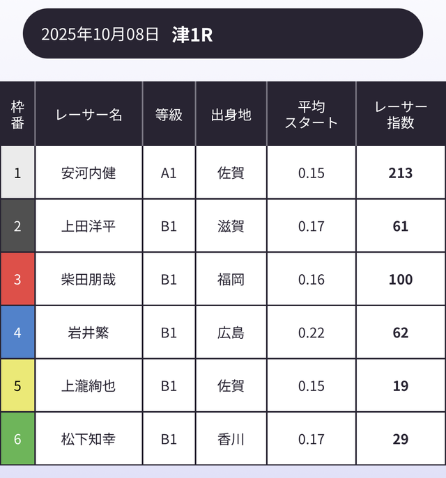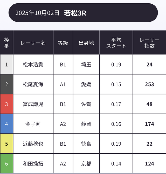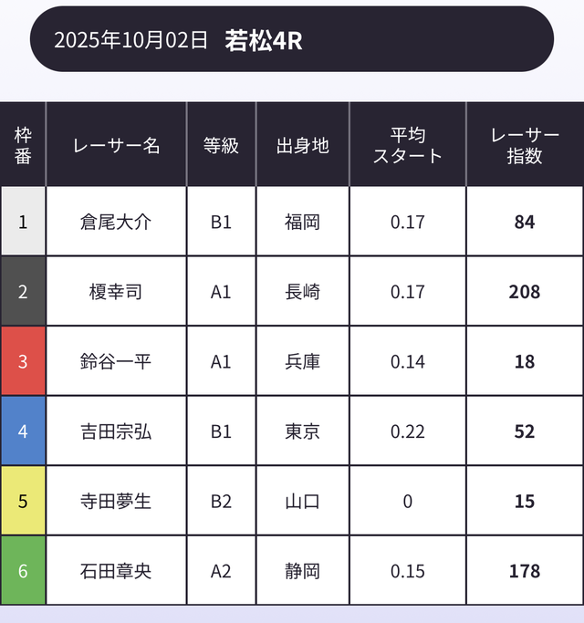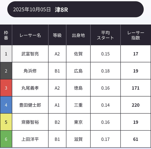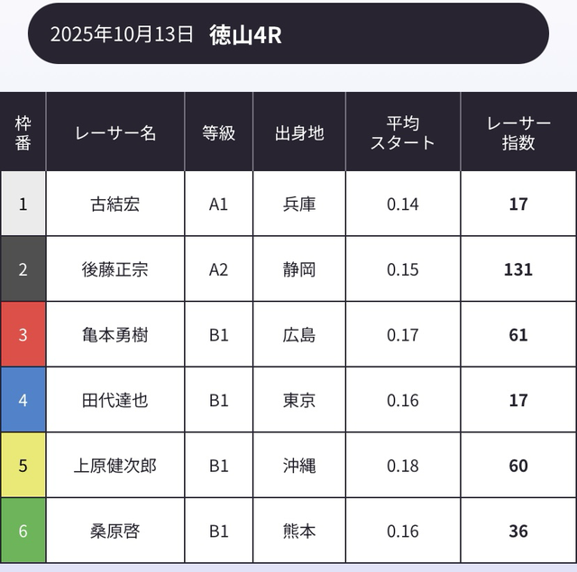 | コスパ | 4.0 | 舟券代に対しての払戻が 高いか低いか |