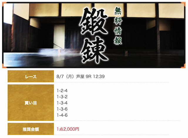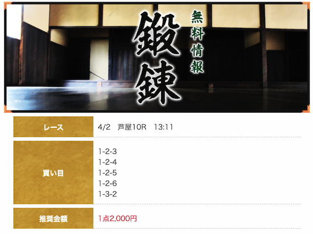 無料予想は推奨金額通りに舟券を買えば大体2〜3万円当たってくれる。的中率よりも回収率を意識しているってイメージだから同じ狙い方の人は使ってみていいかもね。