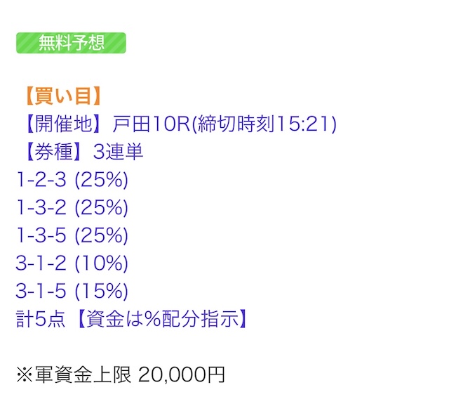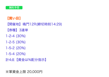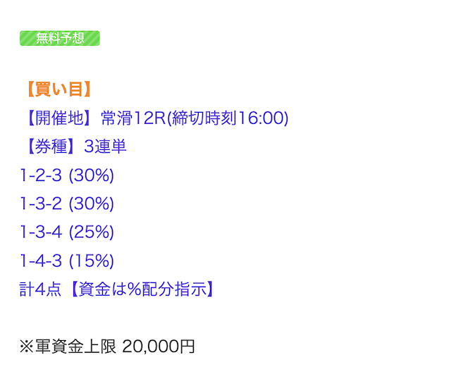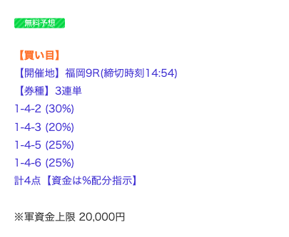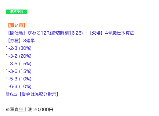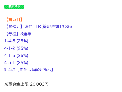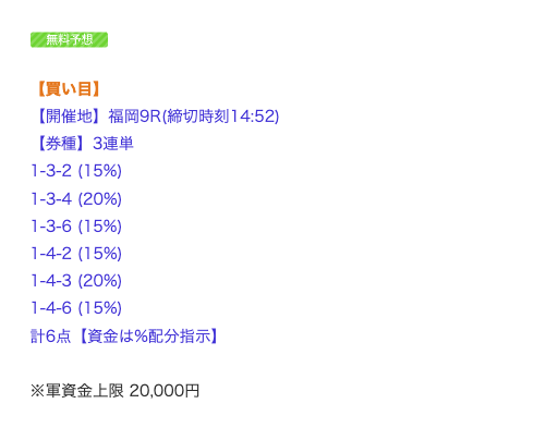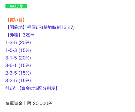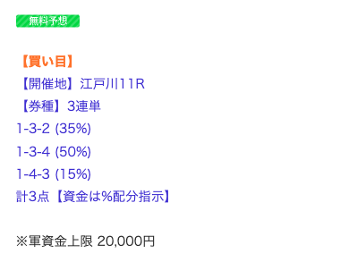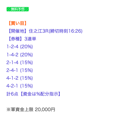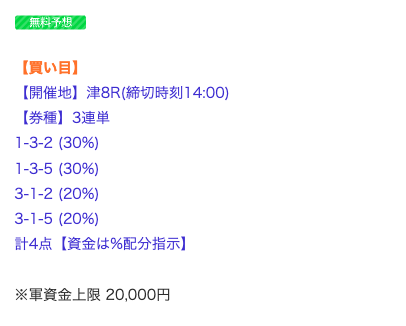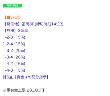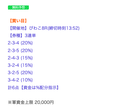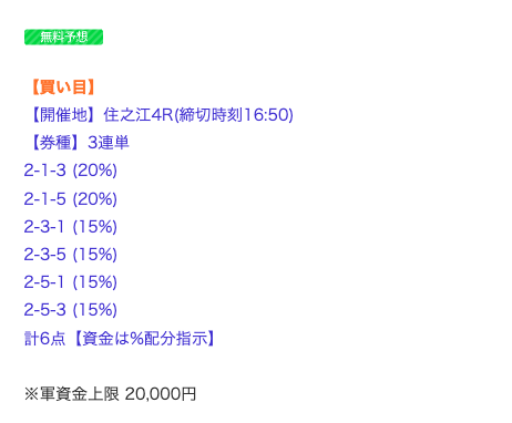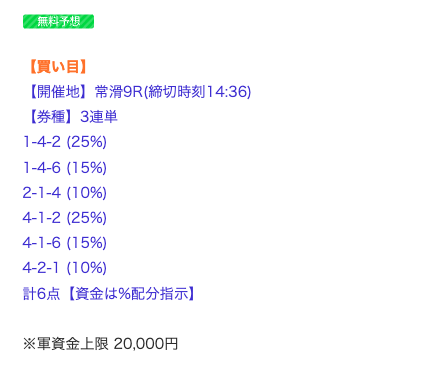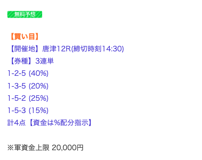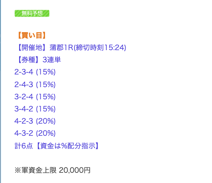 無料予想が割とその通りの流れでドンピシャしてるので有料も信用してる