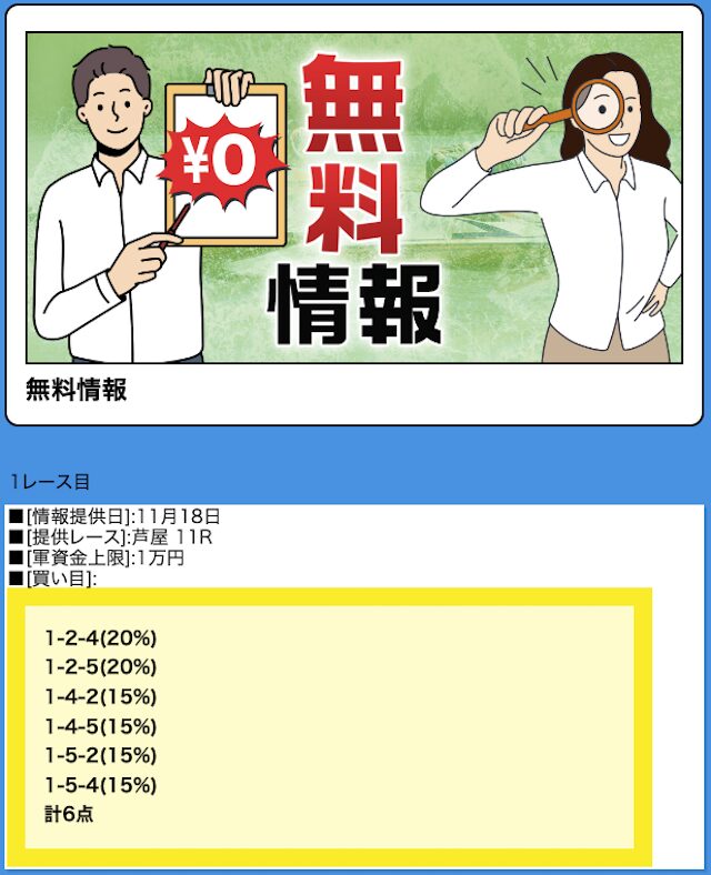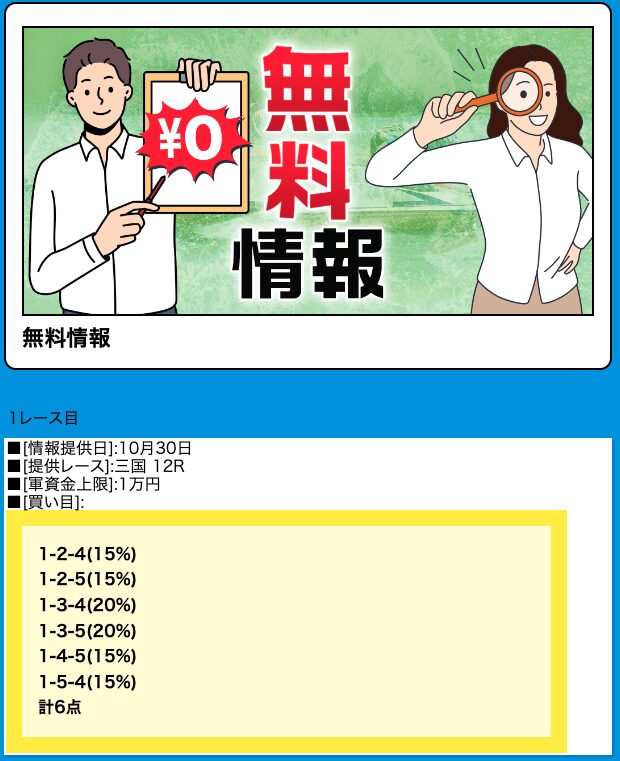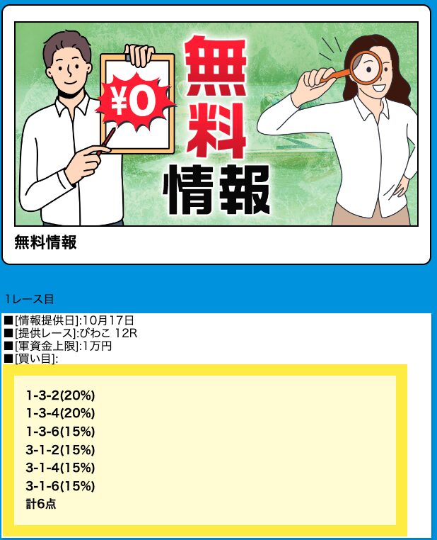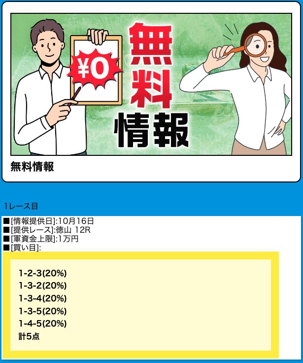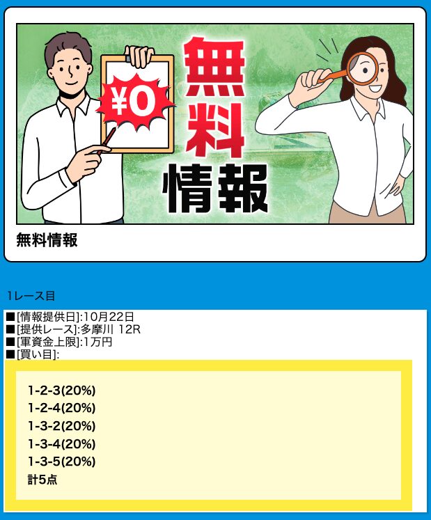 高額払戻がウリ! 関係者からの裏情報もアリで 見るだけで稼ぎやすくなる予想。 無料で使えるのでぜひ! | |