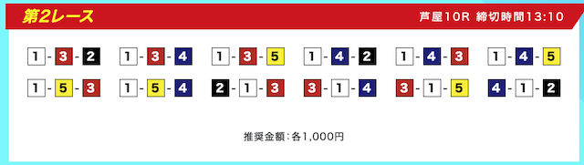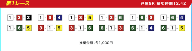 - 12月18日 芦屋9R【買い目】三連単3-1-5130.1倍130,100円 - 12,000円= 118,100円1,084%