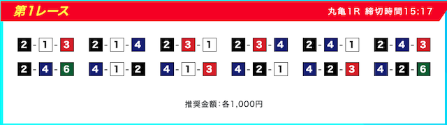 - 12月11日 丸亀1R【買い目】三連単4-2-627.2倍27,200円 - 12,000円= 15,200円226.7%