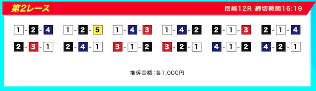 - 12月12日 尼崎12R【買い目】三連単1-2-65倍0円 - 12,000円= -12,000円✕