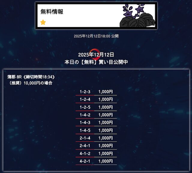 「予想が全く当たらない」や「当たったけど稼げない」なんて投稿はなく、堅実に稼げる予想を公開しているようです。