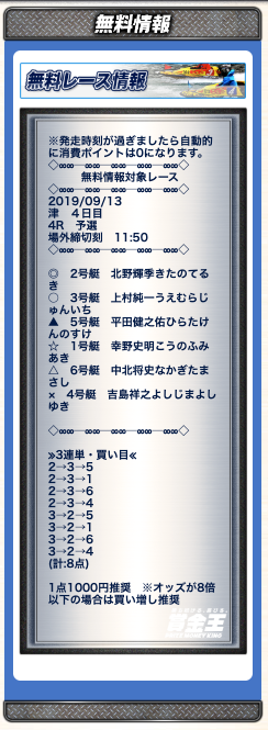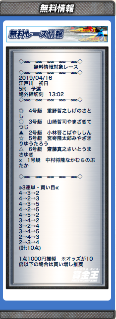 賞金王の無料予想は基本午前10時頃にログインページ内で公開されます。