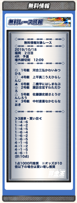 - 匿名的中率が良いサイトも回収率が良いサイトってどっちかのイメージあるけど、一騎当船はどっちも良いんだよな。 これが本物の予想サイトなんだと思う。 前につかった時は舟券の4倍は稼いでたぞw