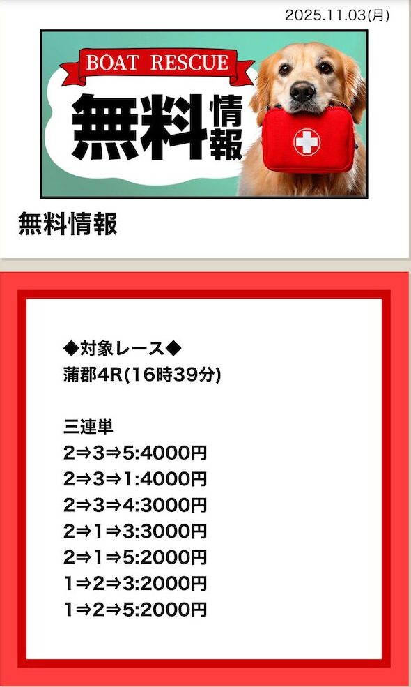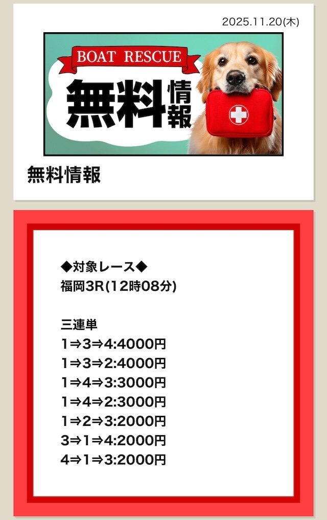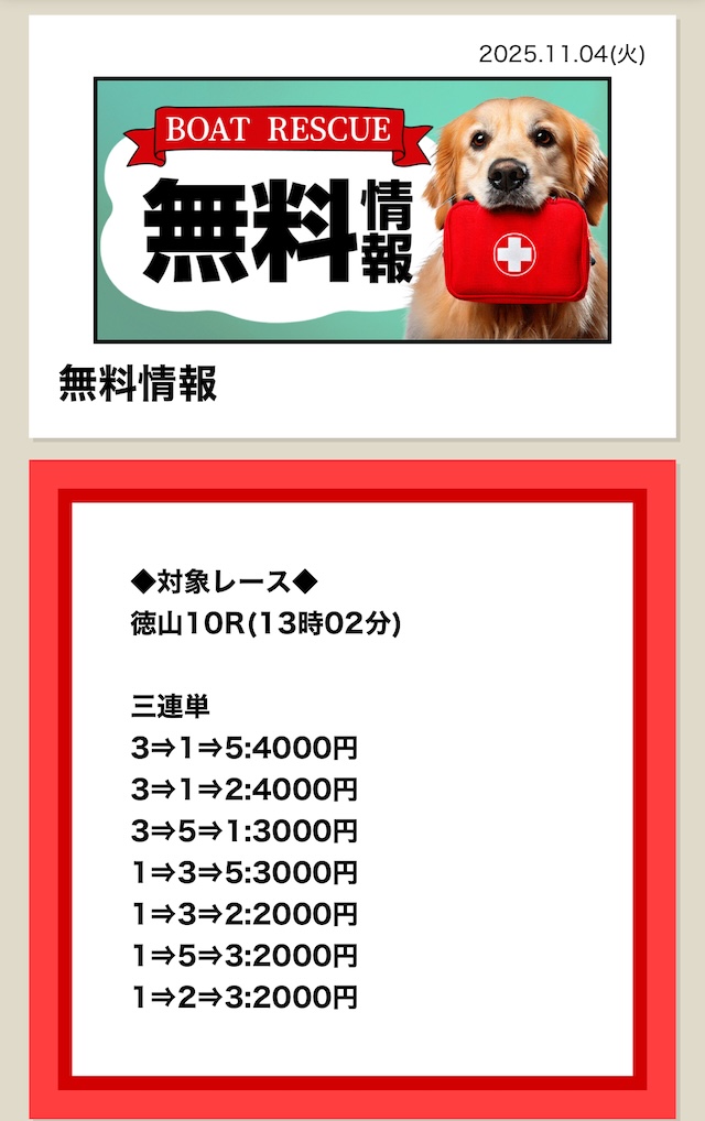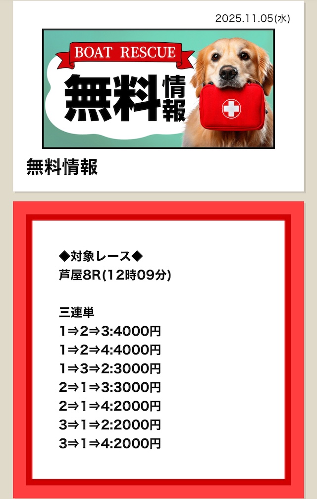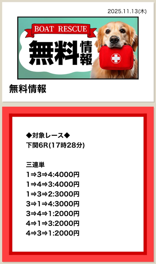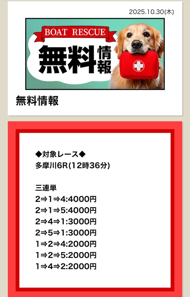 | 最新予想まで更新中! ボートレスキューの 無料予想参加実績 |