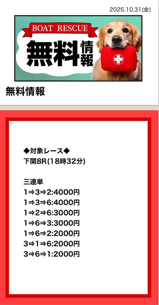 ボートレスキューは組み合わせごとに1点あたりの舟券代を変えていました。