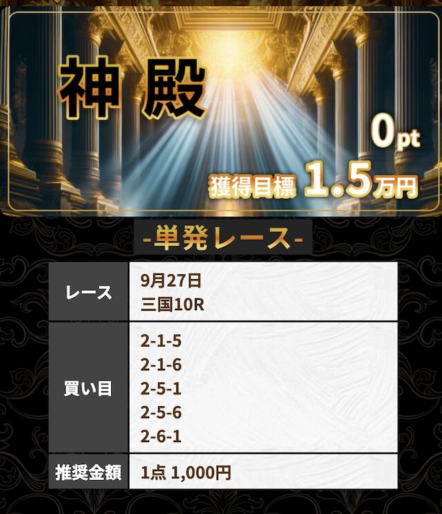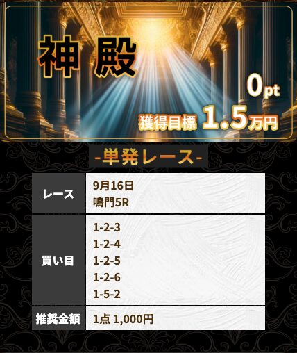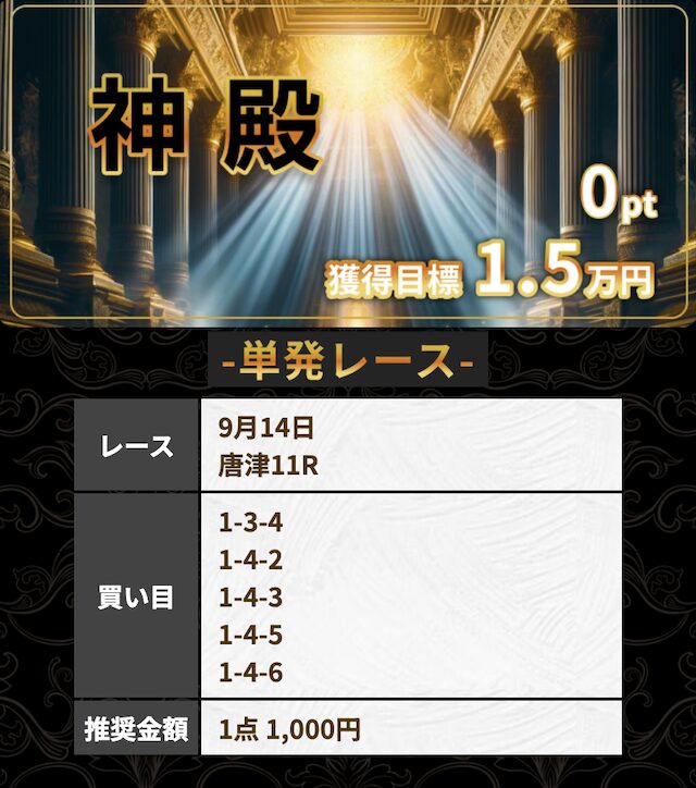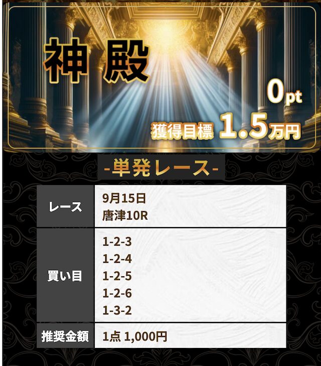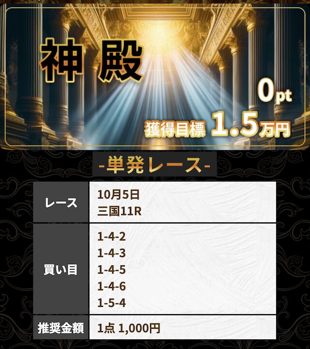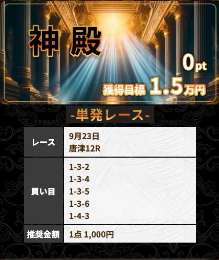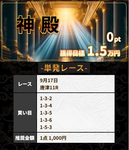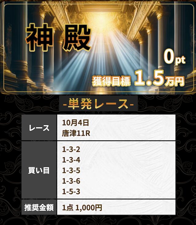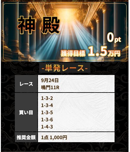 | 2024年10月12日 | 祭壇 | 的中! | 17,000円 | +18,000円 |