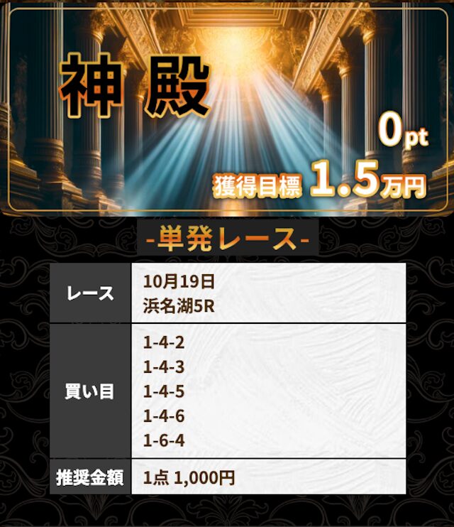 そしてリスク面で考えれば最も安価な「祭壇」が良いとも思えるものの、ボートリッチの無料予想なら十分この投資効率は出せるので、有料予想を試したいなら良いかもですがお金を払ってまで参加はあまりおすすめできません。