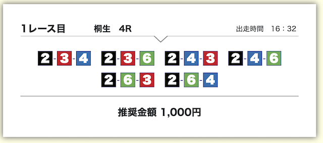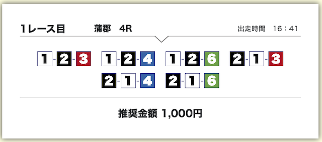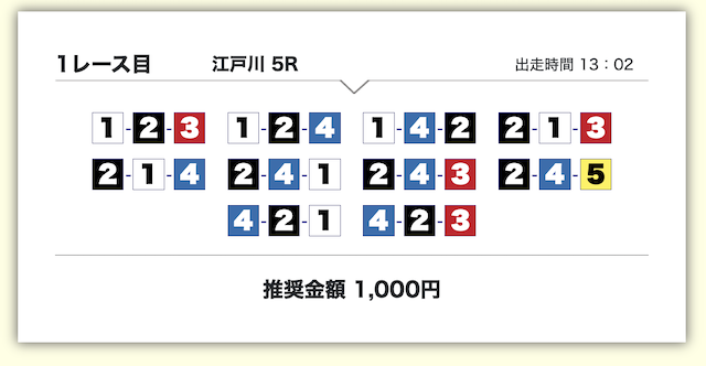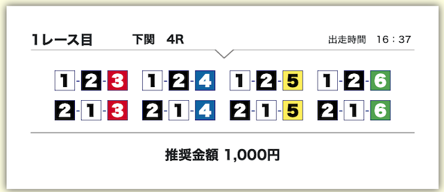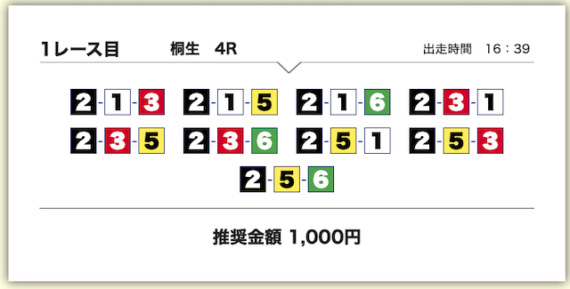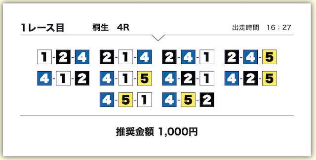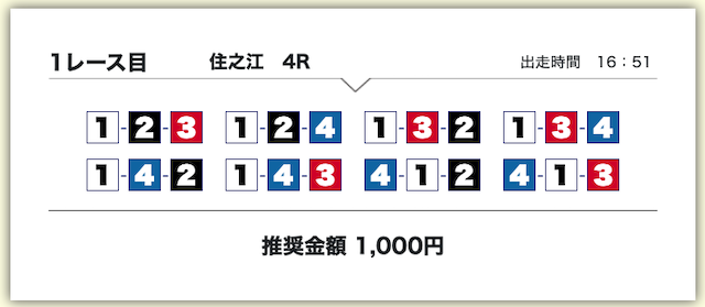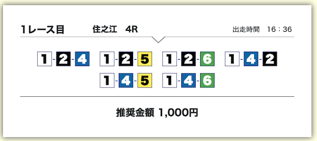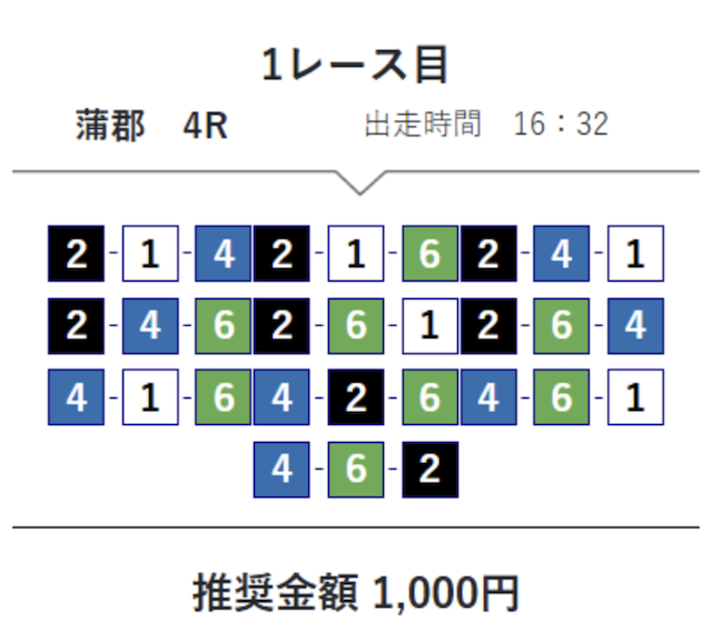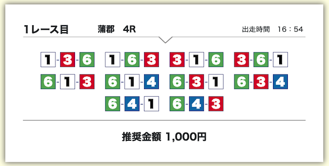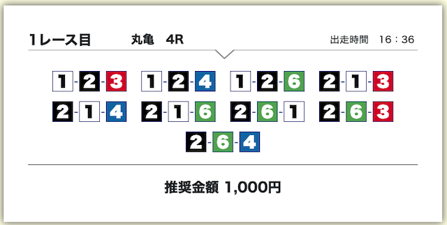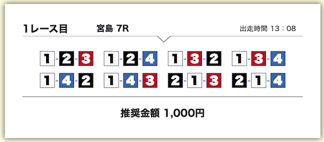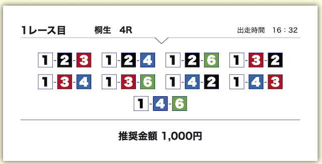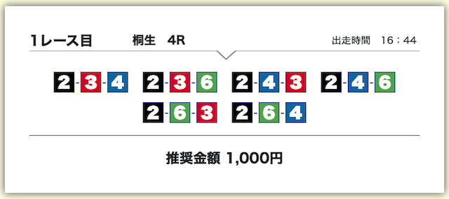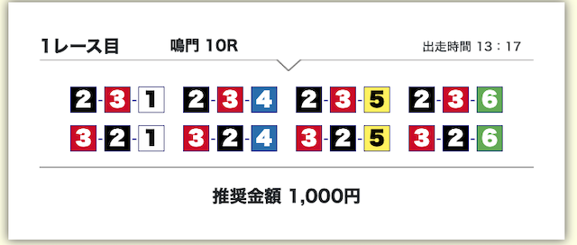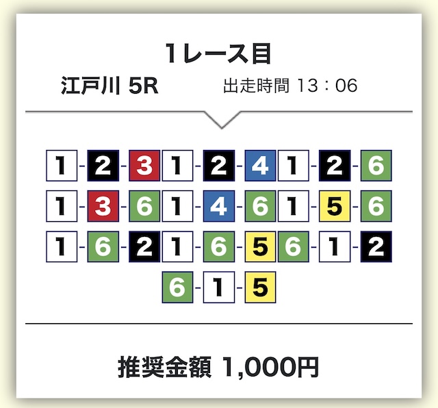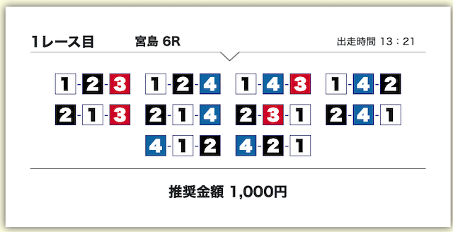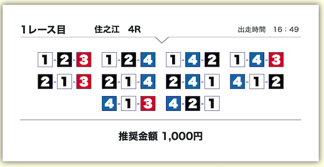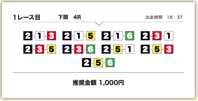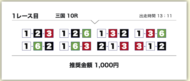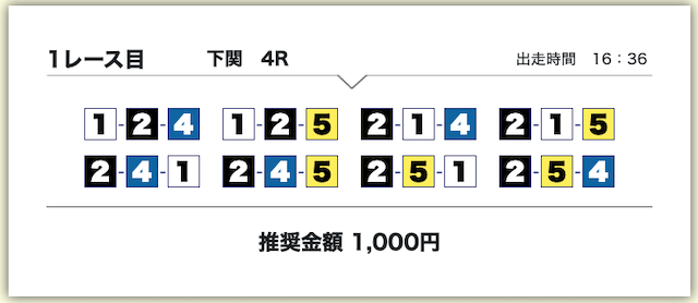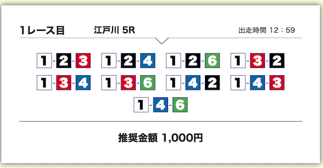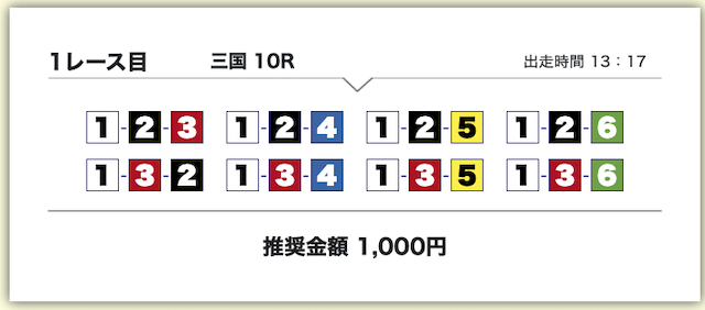 ・1-2-3、1-2-4、1-3-4、1-6-3、2-1-4の組み合わせがアツい