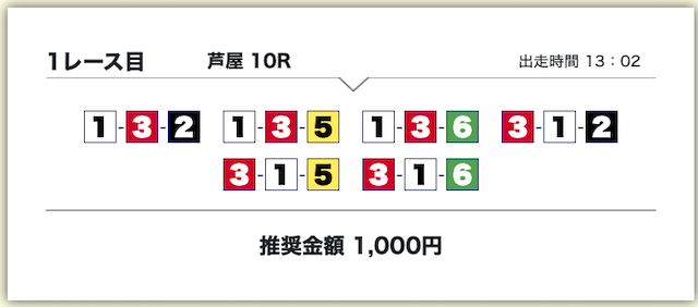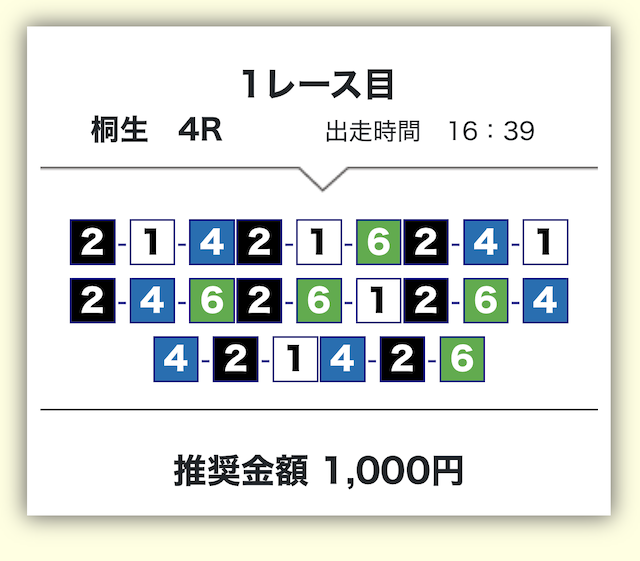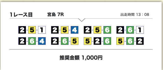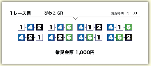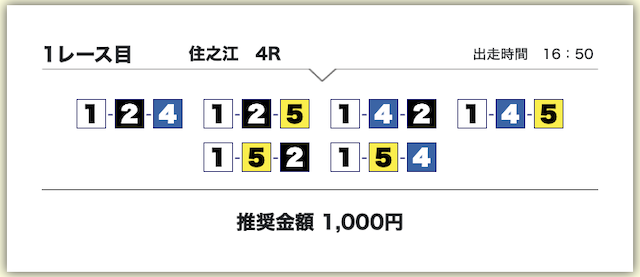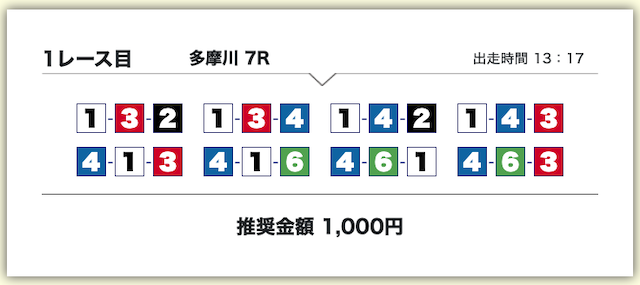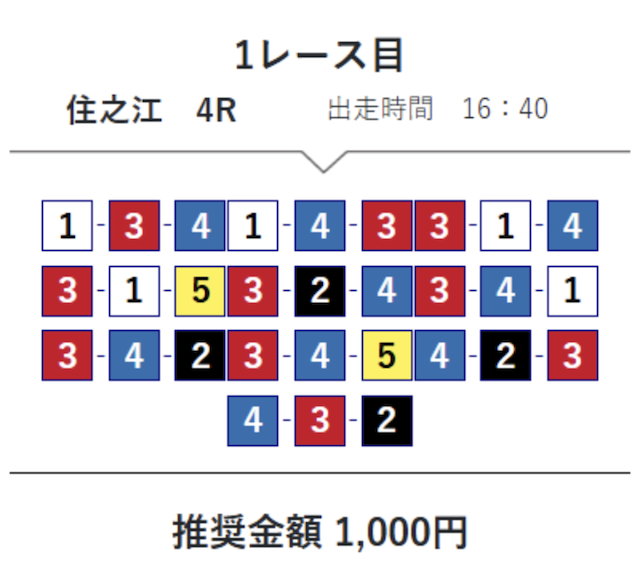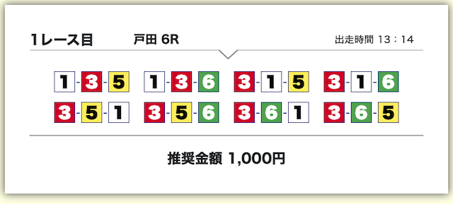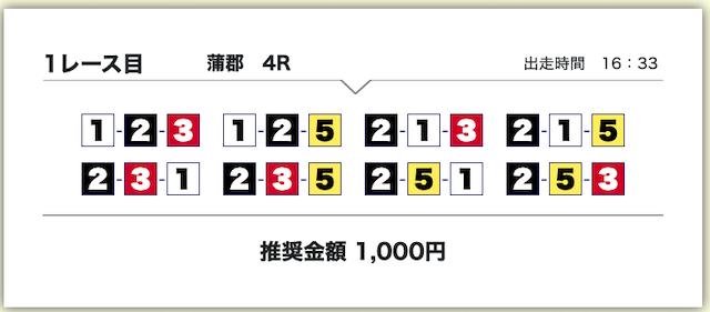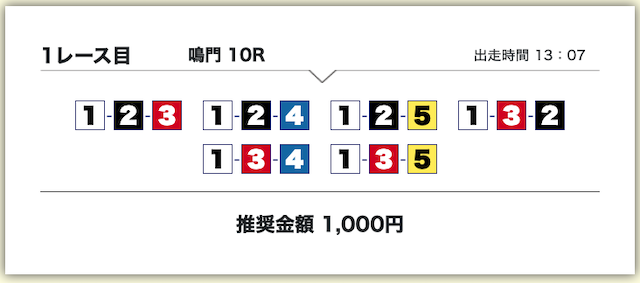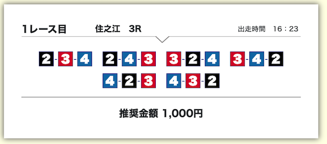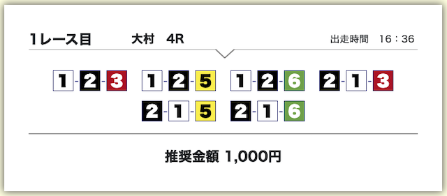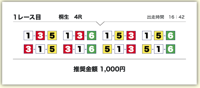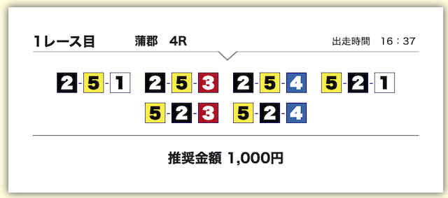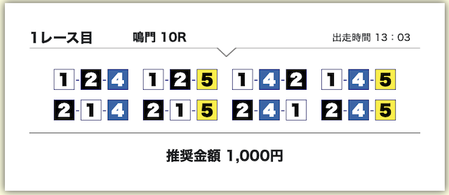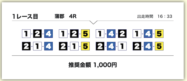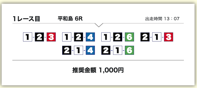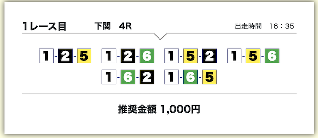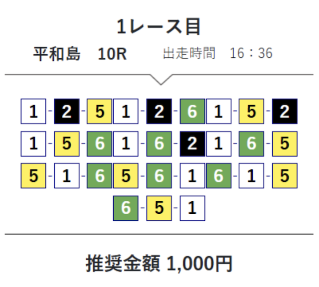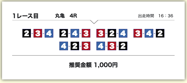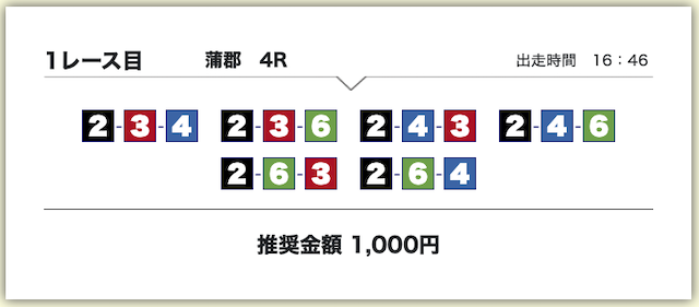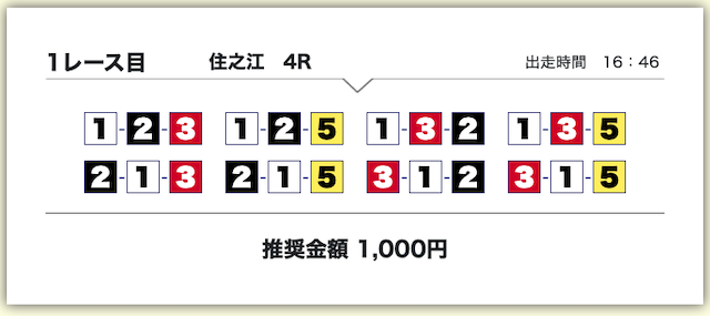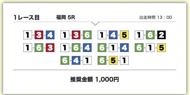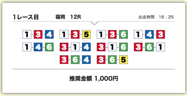・1-2-3、1-2-4、1-3-4、1-6-3、2-1-4の組み合わせがアツい