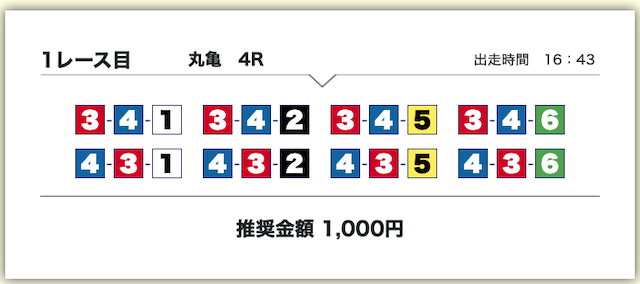 - 9月29日 丸亀3R【買い目】三連単1-3-419倍19,000円 - 10,000円= 9,000円190%