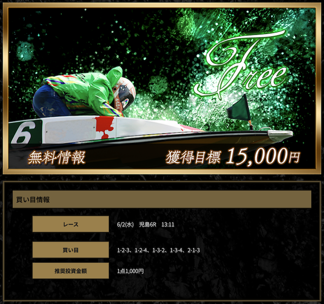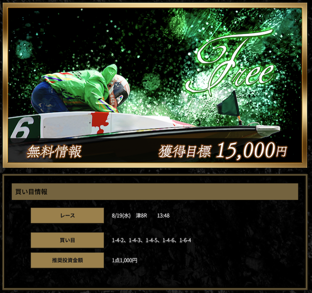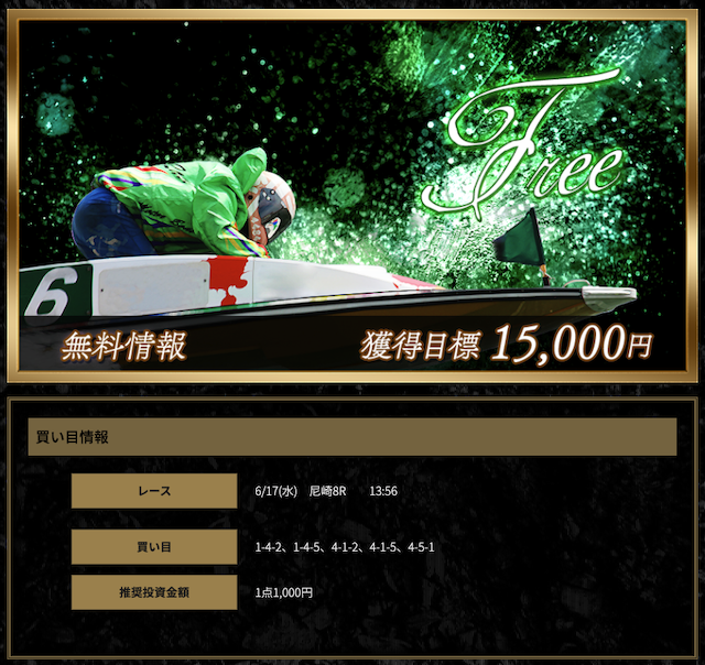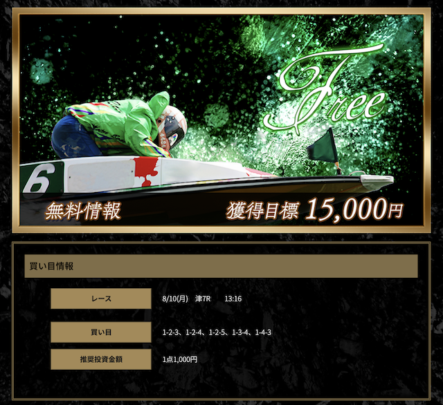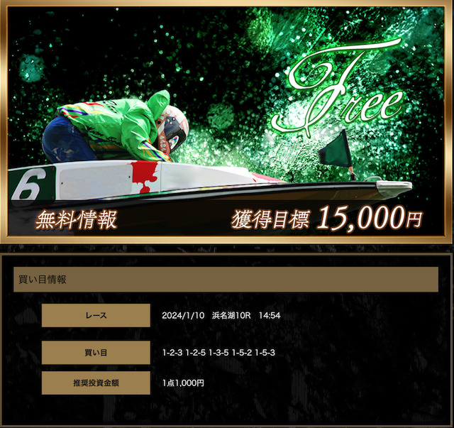 無料予想で稼いだ利益でベーシックプランに参加したのですが、なんと16万の払い戻しを獲得することに成功しました!!クラブギンガは無料予想だけじゃなく、有料予想でも稼げる最高な競艇予想サイトです。