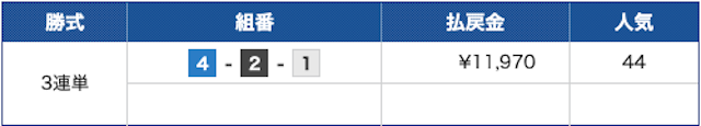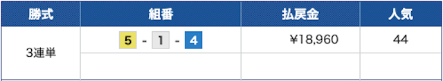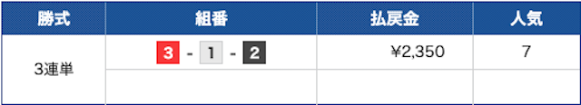点数1点に1万円とかなり高めに賭けた事も要因ではありますが、119.7倍の高配当を当てたからでしょう。