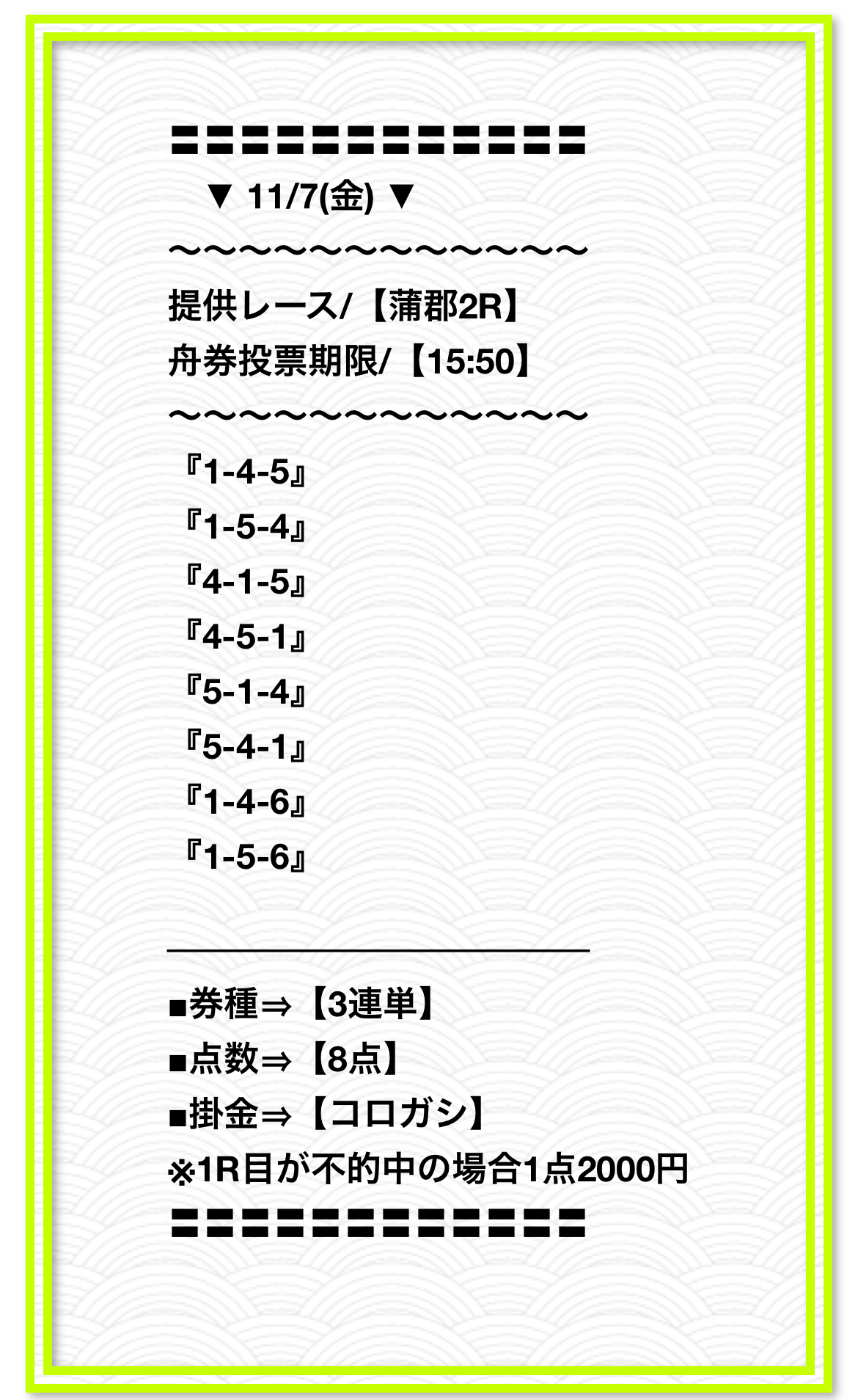 1点あたりの舟券代を高めにして勝負すれば、十分すぎるお金を稼ぐ事も可能です。
