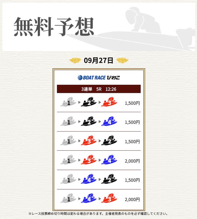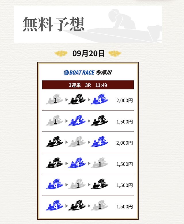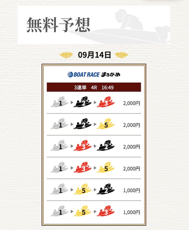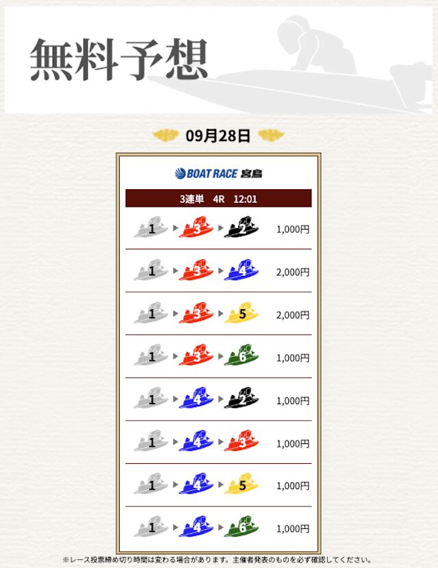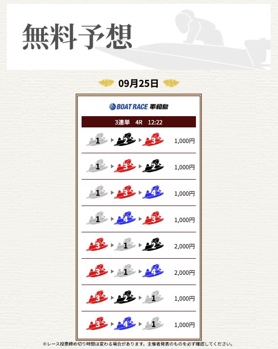 一騎当船は買い目の点数をレースごとに変えているようなので、予想が難しいレースは点数を広げ、堅実決着になりそうなレースでは点数を抑えるような予想をしているかもしれません。