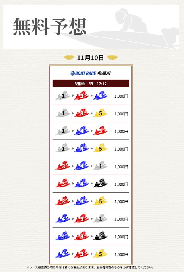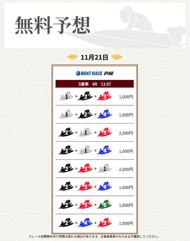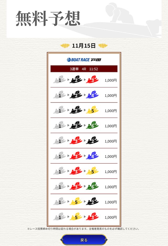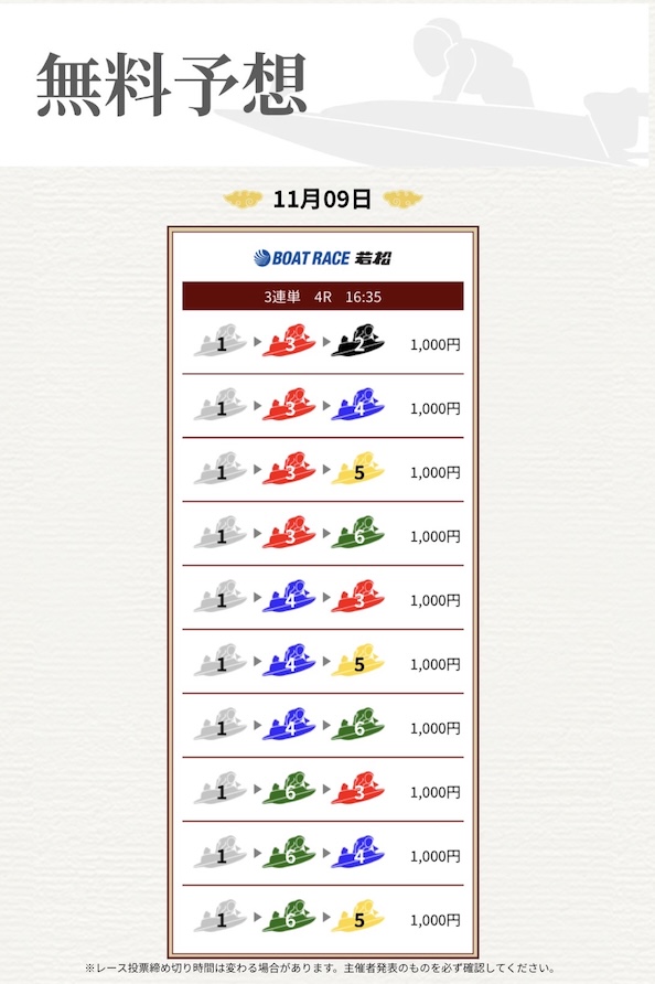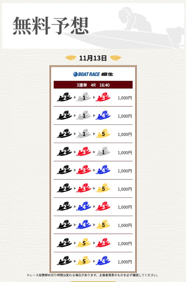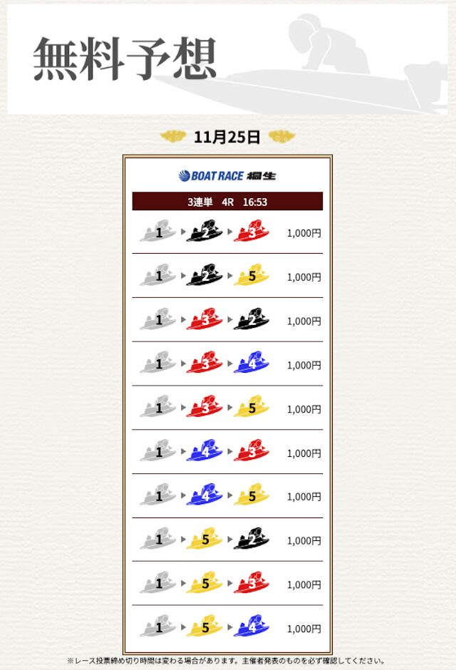 | 情報料金+舟券代 | 130,000円 |