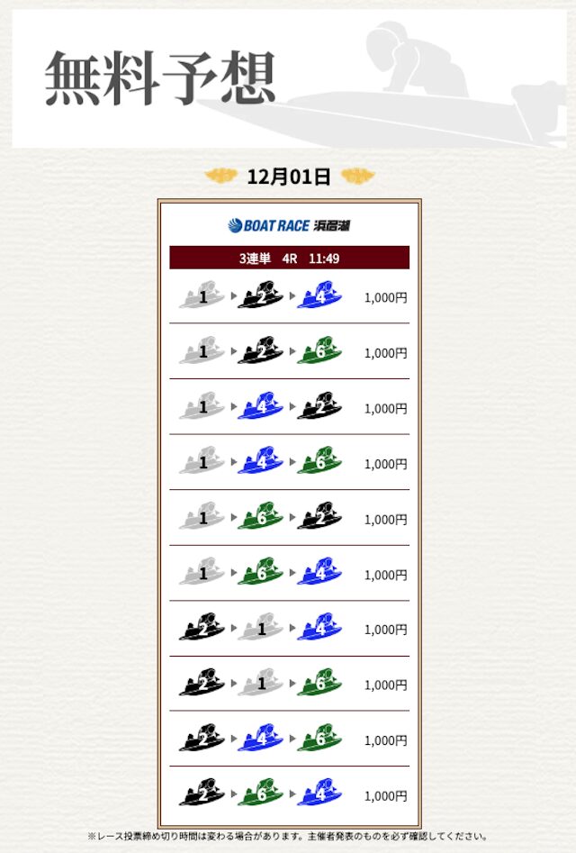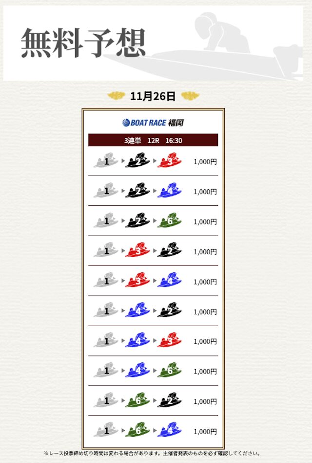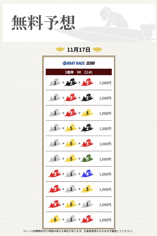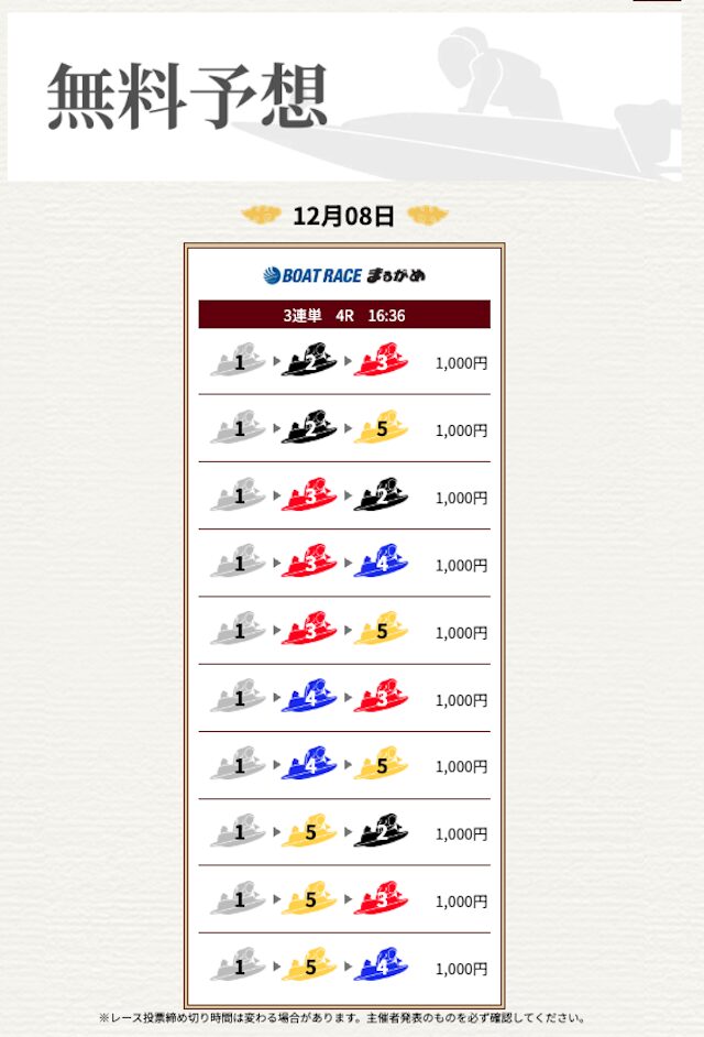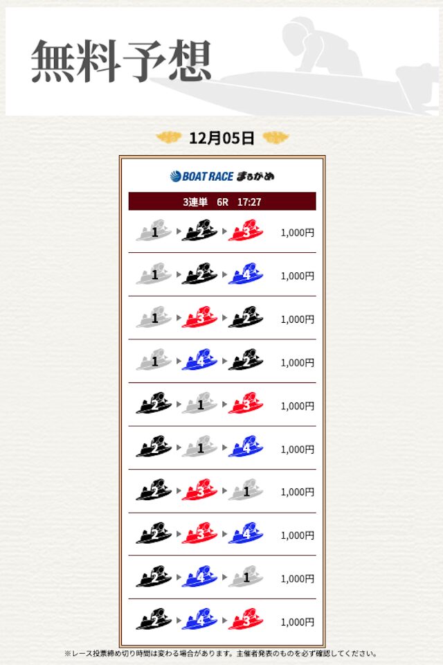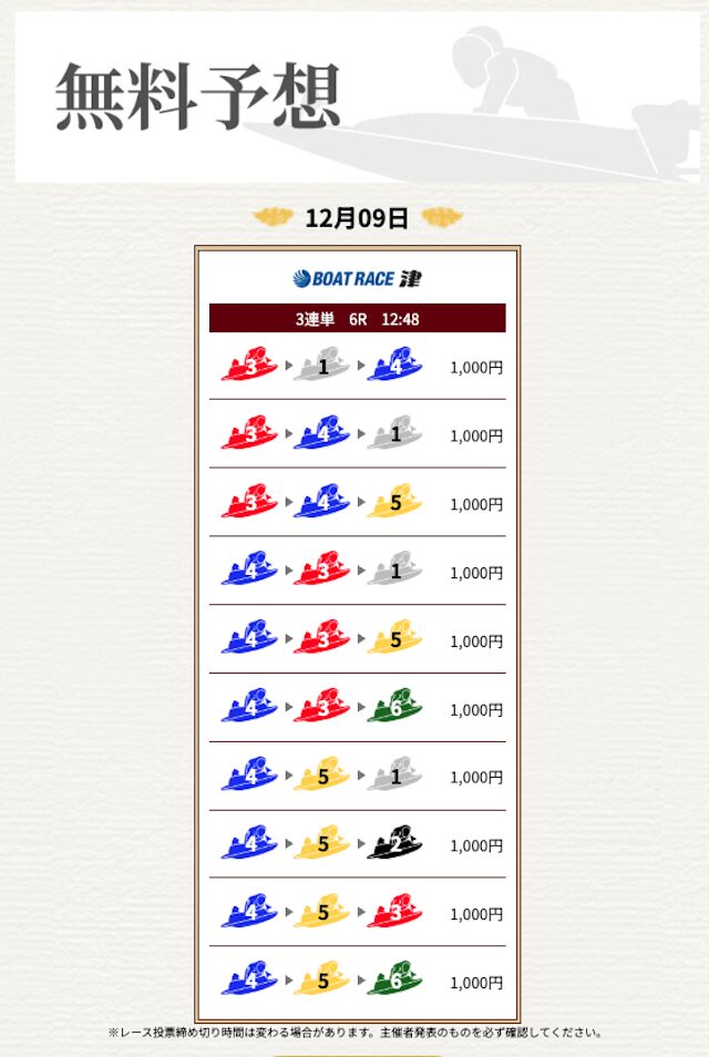 | 情報料金+舟券代 | 130,000円 |