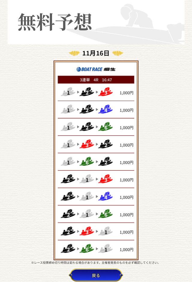情報料金は50,000円とやや高めですが、無料予想の払戻金があれば余裕で購入できます。