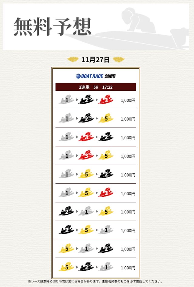 料金は50,000円と一気に上がり、これまでの結果から予想への期待値も高いです。