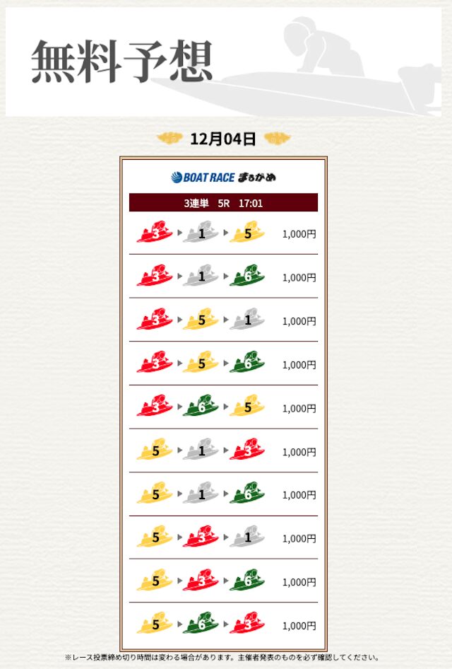 | 情報料金+舟券代 | 90,000円 |