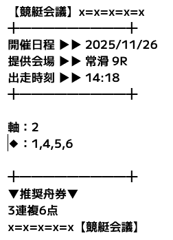 - 11月26日 常滑9R【買い目】三連複4-2-537.1倍37,100円 - 6,000円= 31,100円618.3%