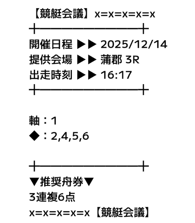 ◯ | 競艇会議からの競艇に関する情報 以外は届かなかった。 |