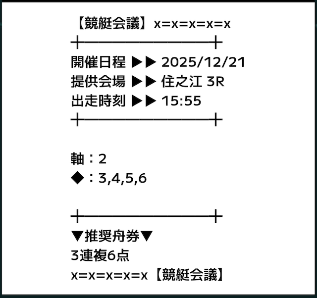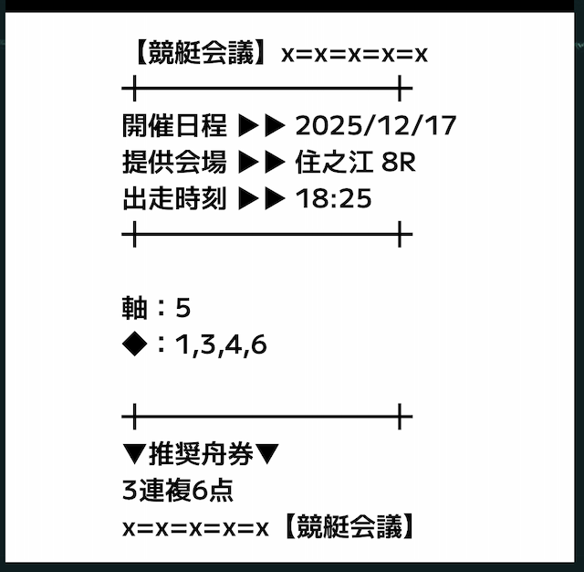 - 12月17日 住之江8R【買い目】三連複4-6-521.7倍21,700円 - 6,000円= 15,700円361.7%