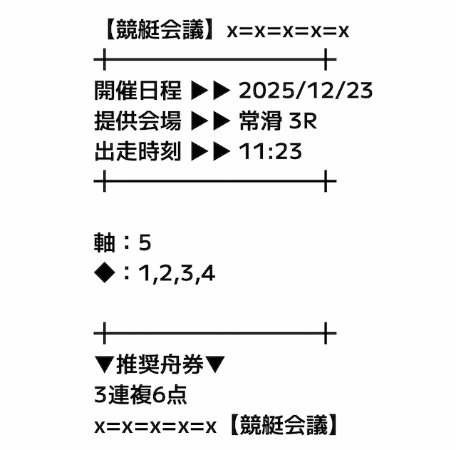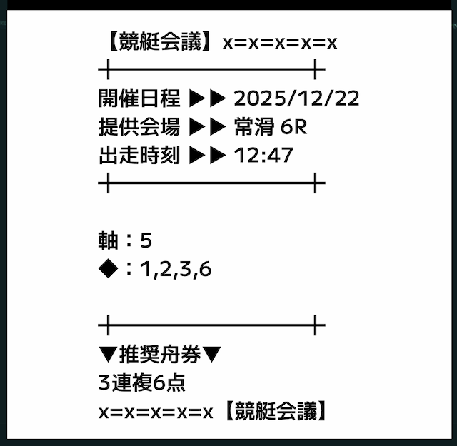 - 12月23日 常滑3R【買い目】三連複4-5-631.2倍0円 - 6,000円= -6,000円✕
