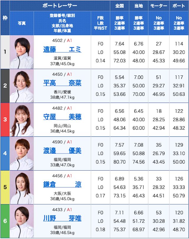どの選手も絶妙に舟券に絡んでおり、好走してもおかしくはない。
