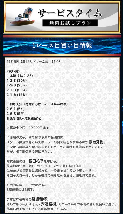 しかも舟券代の数倍〜数十倍の払戻金を獲得できる予想を公開しています。