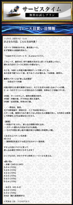 毎週のように勝てるので、このサイトがなかったら今でもボートレースをやめてしまっていたかもしれない。ありがたい存在だね。 -