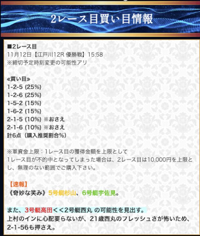 初戦を的中させただけに、2戦目を落としたときのダメージは計り知れません。