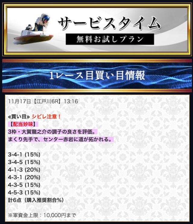 この的中実績から考えると、他の有料予想プランにおいても高い成果を期待できる可能性があります。