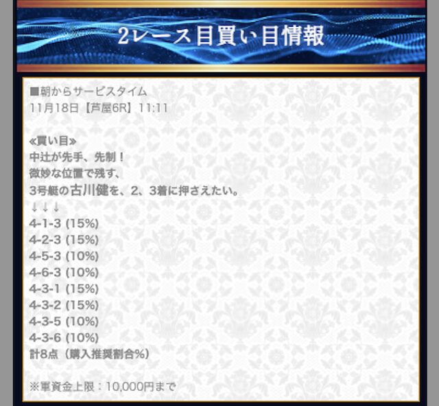 高額の有料予想でも結果を出しており、予想の質の高さを見せてくれました。