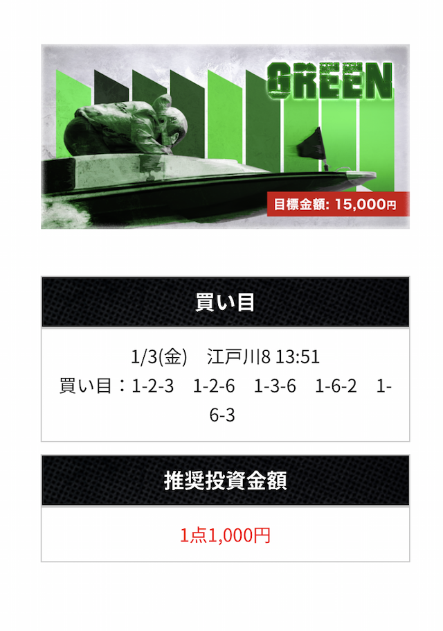 無料予想で推奨金額通りに勝負しても大きく稼ぐのは難しい。ある程度予算があれば1点2千円ほどで買うことをおすすめします。