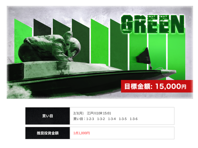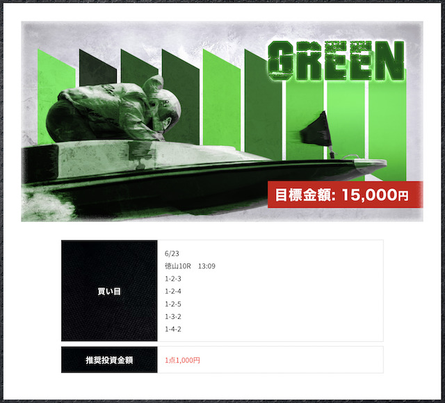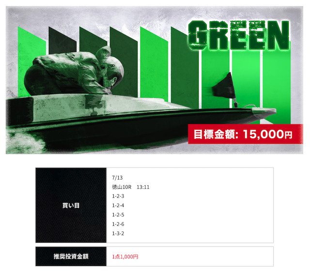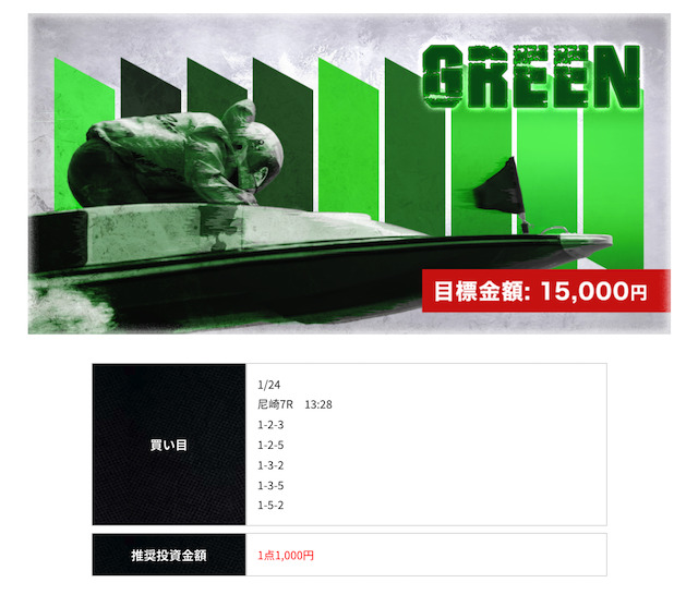 レース毎に買い目の数調整してくれてるのが個人的に安心感あって気に入ってます。かれこれ競艇ライナーに登録していから無料予想だけで10万は稼げてるねwそろそろ担当者の工藤がおすすめしてくれた有料情報にも参加してこうかと!