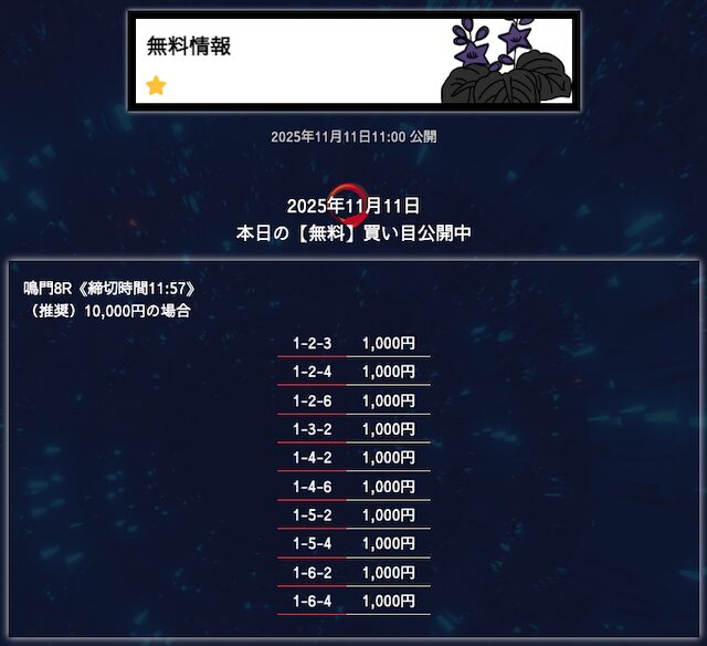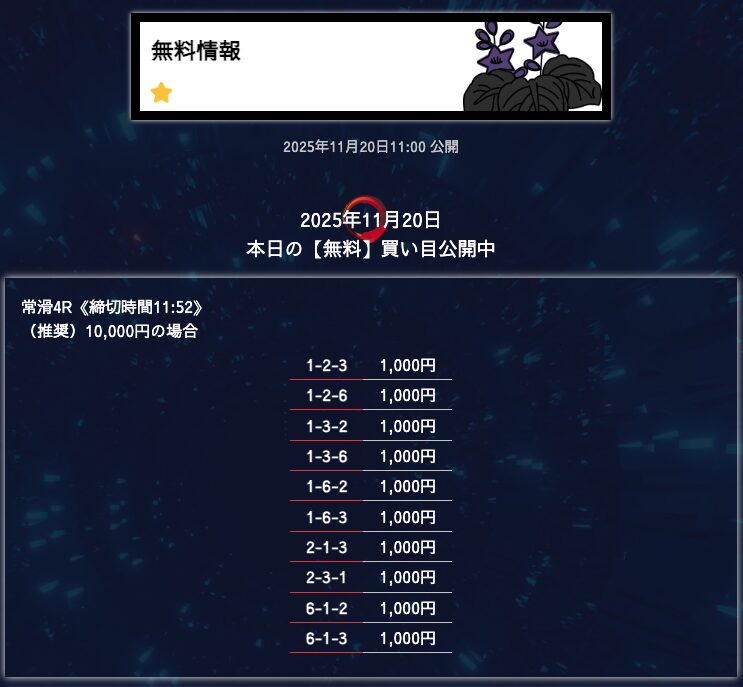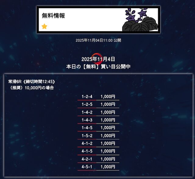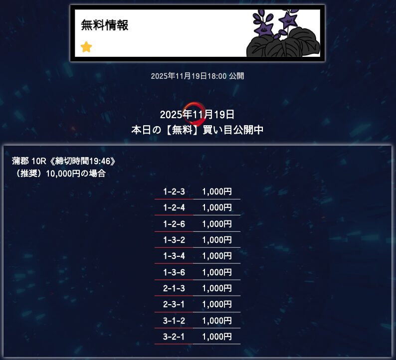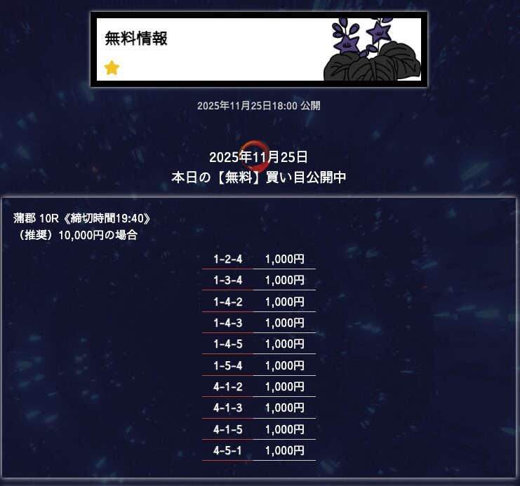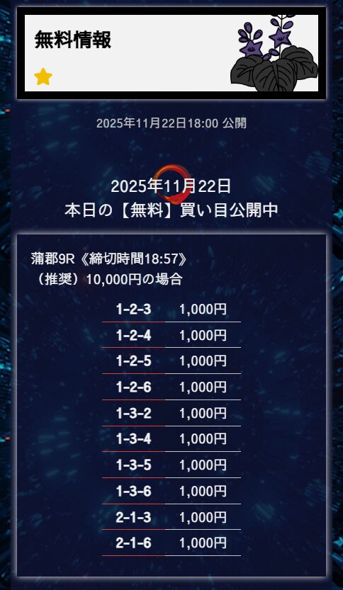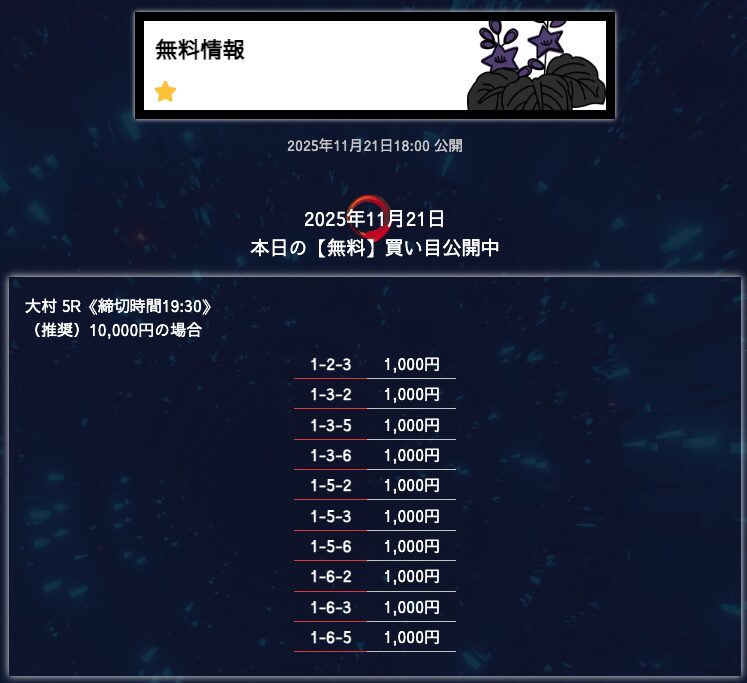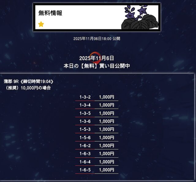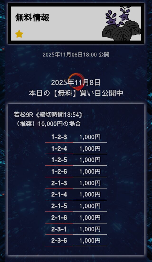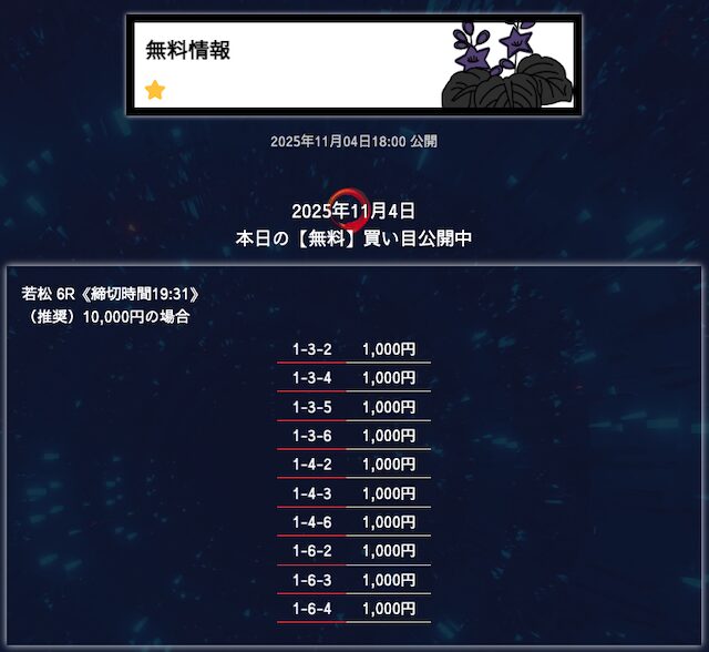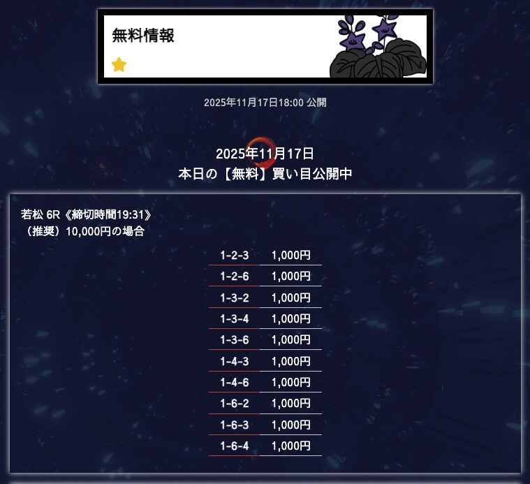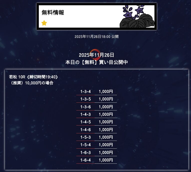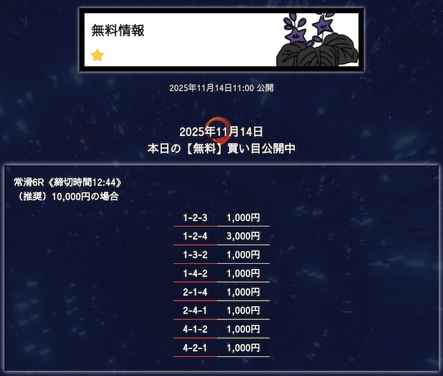 - 匿名6点構成でこれだけ仕上げてくるのはなかなかないと思う。 買い目に無駄がない感じがして、毎回「狙いどころが見えてるな」と思わされる。無理に荒らさず、でも避けるべき穴はちゃんと入ってる。