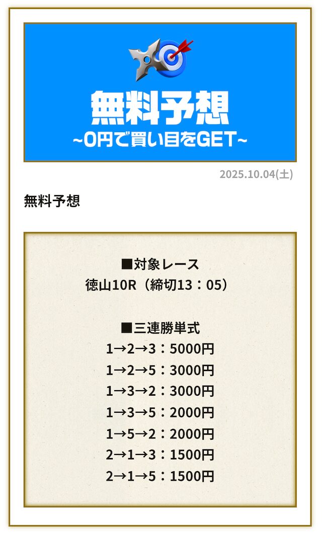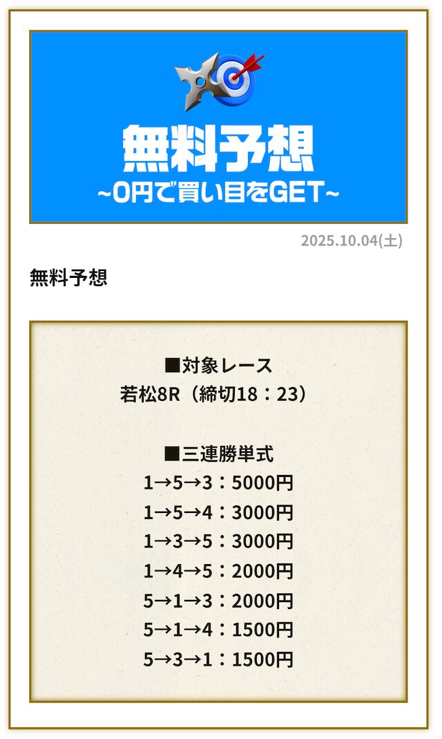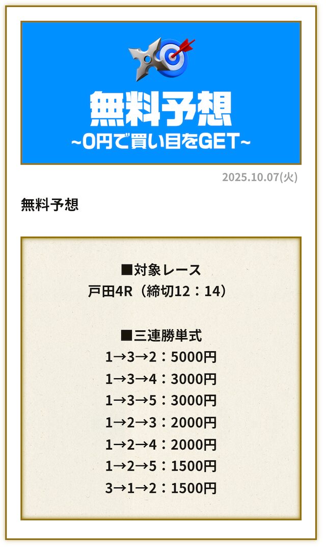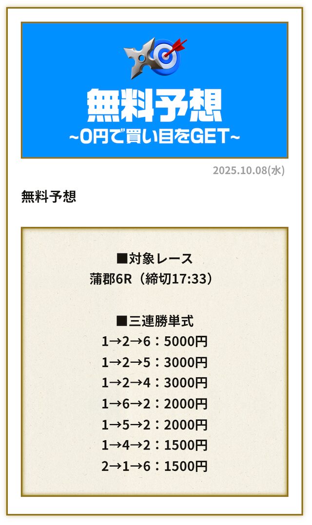 毎日ではなくて、毎日のように予想の買い目を提供しているとしても稼げるのは何十回も参加したうちの何回かしかない可能性もありますし、なんならそういうサイトのほうが多かったりします。
