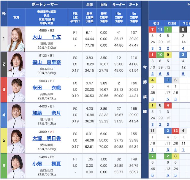 競艇ニンジャが軸に選んだのは1号艇の大山千広選手。