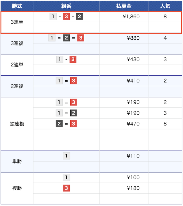 金額を調整してはいますが、自信がある厚くはってる買い目は1-3-2の1点なので、的中するかどうかは言ってしまえば1点予想しているようなものです。