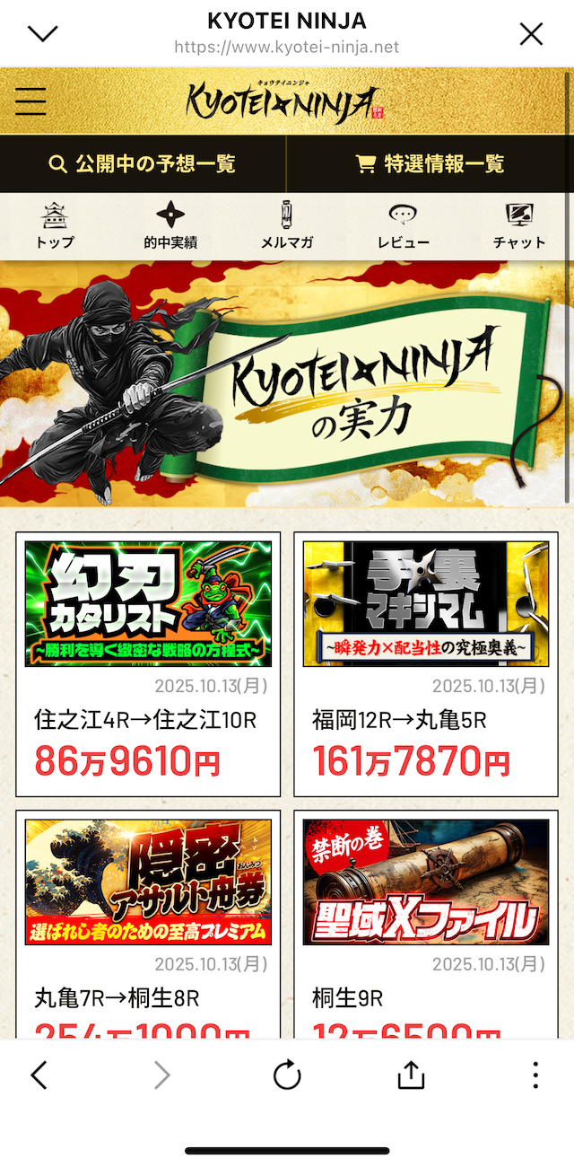 今回検証していくのは、競艇予想サイト「競艇ニンジャ(KYOTEI NINJA)」。